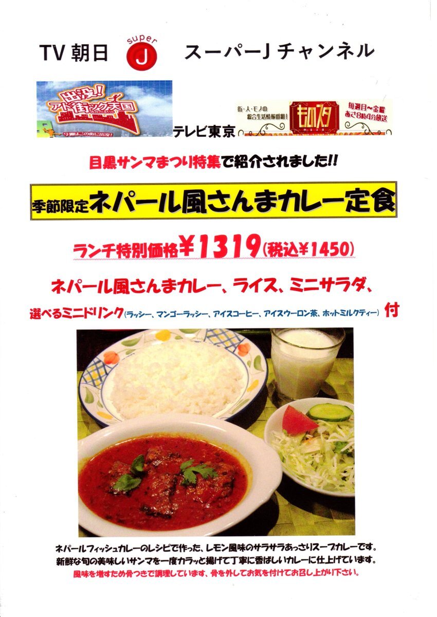 11:30〜22:30通し営業ちうにゃ〜🍷🍻🍛☕コーヒー、チャイ、昼飲みもお気軽にお立ち寄りくだしゃいにゃ〜😺🍑✨️ そろそろ終盤?季節限定『ネパール風さんまカレー』お勧めにゃ〜🍛 #ランチ 11時半~16時 🟠日曜:日替→ゆで卵とほうれん草カレー 🟥#目黒 🐾3分 インド&ネパール ラクシュミー pic.x.com/Ych1NRmOfx