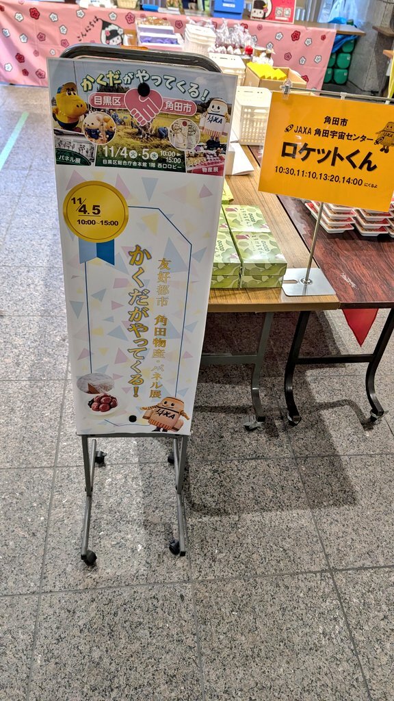 目黒区役所ロビーにて角田市物産展。 友好都市、宮城県角田市の物産を目黒区役所ロビーにて販売しています。今日と明日の二日間。3時まで。 角田市にはJAXAの施設があり、ロケットくんも来場してくれます。 梅、新米など多数。是非ご来場下さい。#目黒区 #目黒区役所 #角田市 #目黒区議会 pic.x.com/UfhaQQBOrg