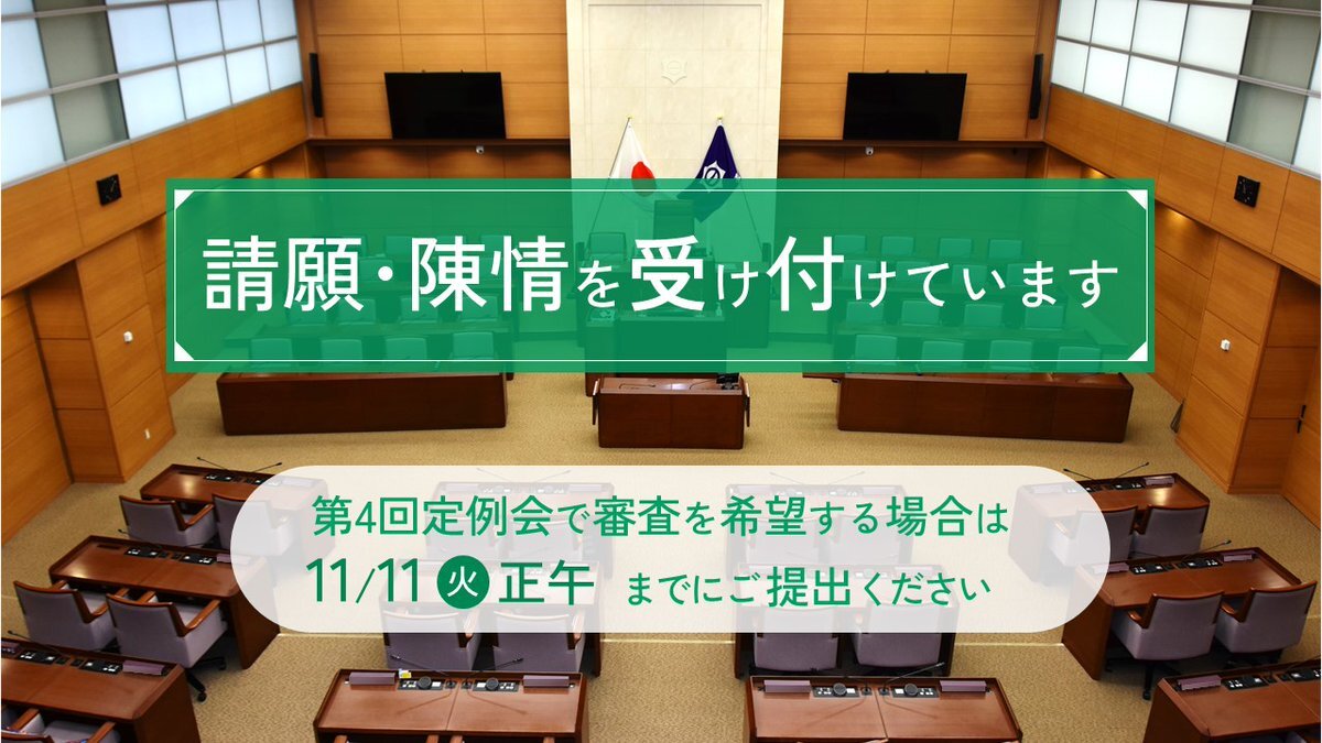 ˗ˏˋ 請願・陳情を受け付け中です ˎˊ˗ 区政のことなど、区議会に直接要望ができる制度です。 第4回区議会定例会で請願・陳情審査を希望する場合は、11/11(火)正午までに区議会事務局へ直接ご持参ください。 原則、郵送ではお受けできませんのでご注意ください。 #目黒区議会 city.meguro.tokyo.jp/kugikai/kusei/… pic.x.com/IPw1RxD3ZC
