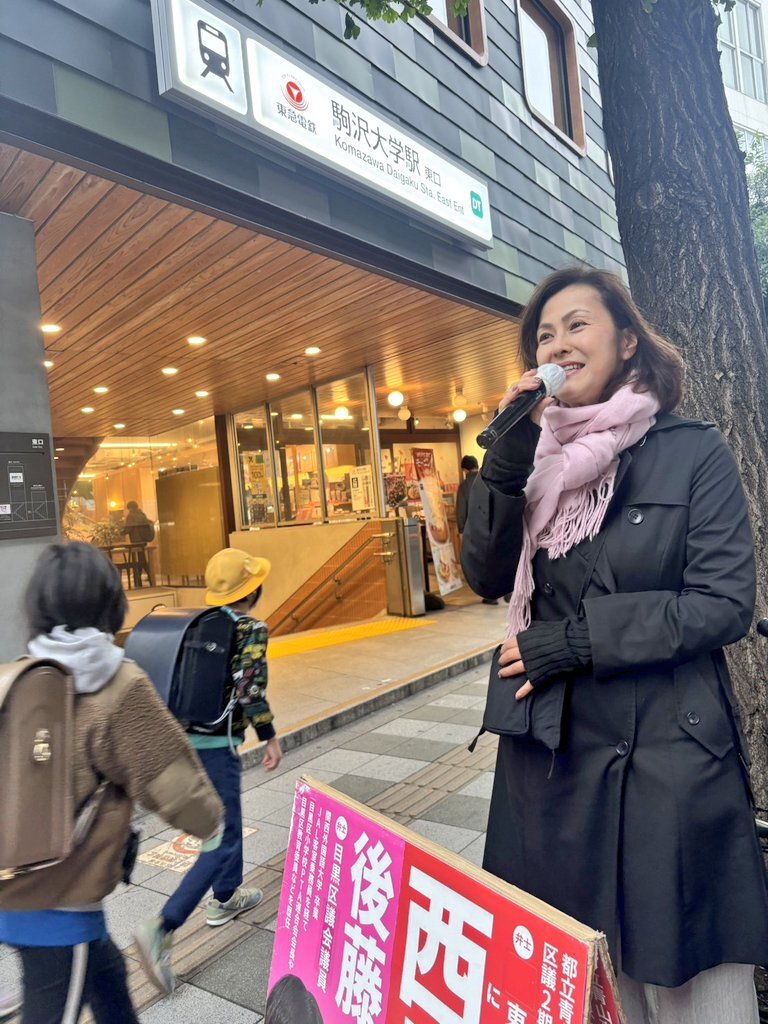 今朝は #西崎つばさ 都議と一緒に、#駒沢大学駅東口 で活動報告を行いました。 「さんまバス🚍️」の報告、碑文谷公園のP-PFI一時休止、デフリンピック等について触れました。 温かく会釈をくださる方が多く、元気をいただきました。ありがとうございました😊 #立憲民主党 #目黒区議会 #後藤さちこ pic.x.com/LO6U0Fkzo0