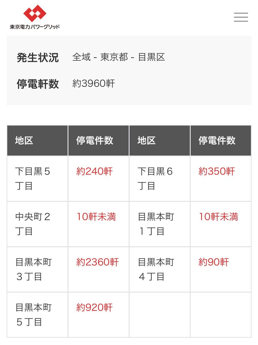 現在 目黒区内一部のエリアにおいて停電発生中です。東京電力パワーグリットによると15:30頃復旧予定とのことです💡 ➡️teideninfo.tepco.co.jp/html/131100000… #目黒区 #停電 #目黒本町 #武蔵小山 pic.x.com/Veq7Kvjtu1