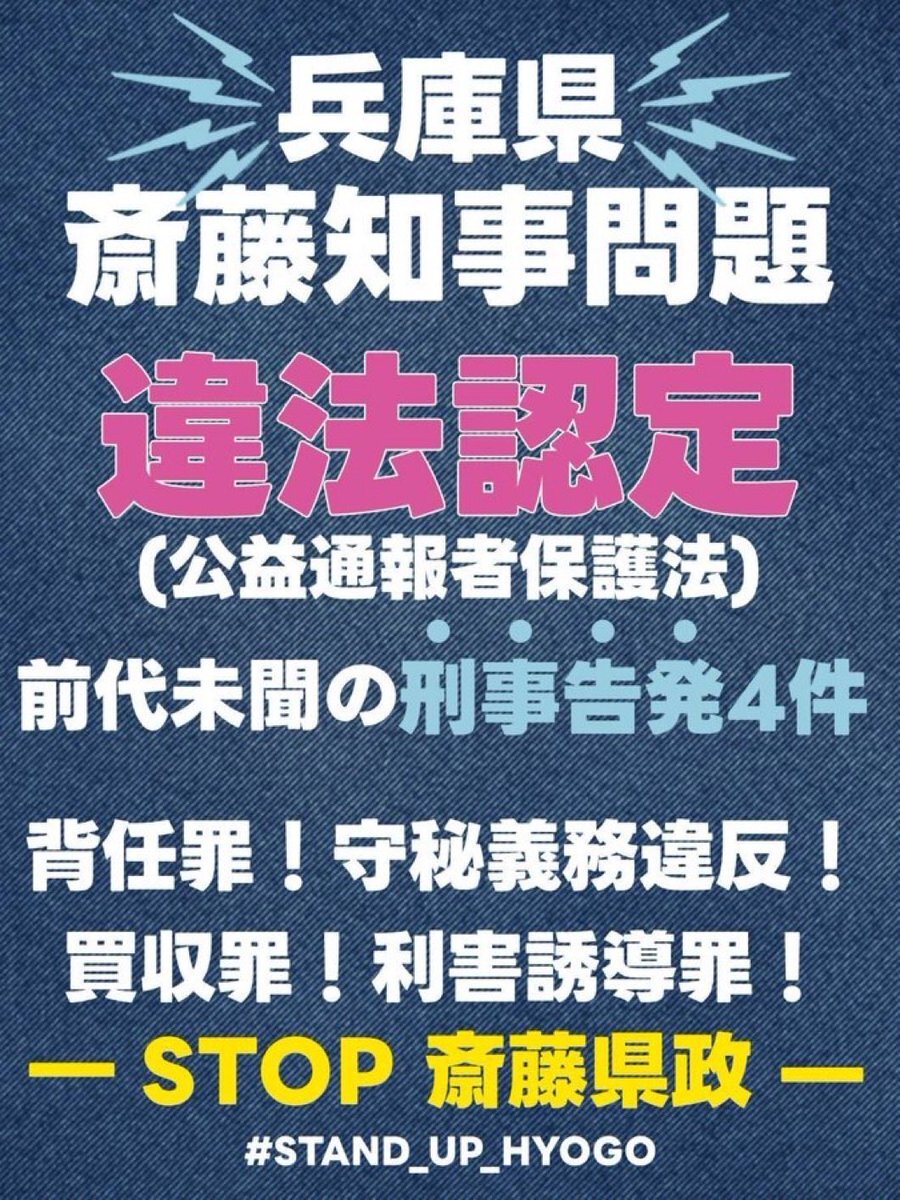 2025年11月14日(金) さぁ今日もやったんど‼️ 絶対に諦めない‼️ 議会と検察が動くまで毎日投稿します。 告発者の名誉回復を‼️ #斎藤元彦は知事失格 #県議会は元彦に不信任案を出せ #さいとう知事は日本の癌 #斎藤元彦は公益通報者保護法違反 #斎藤元彦は公職選挙法違反 x.com/jackall2025051…