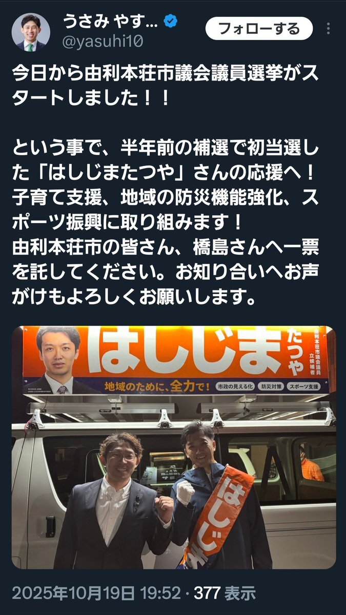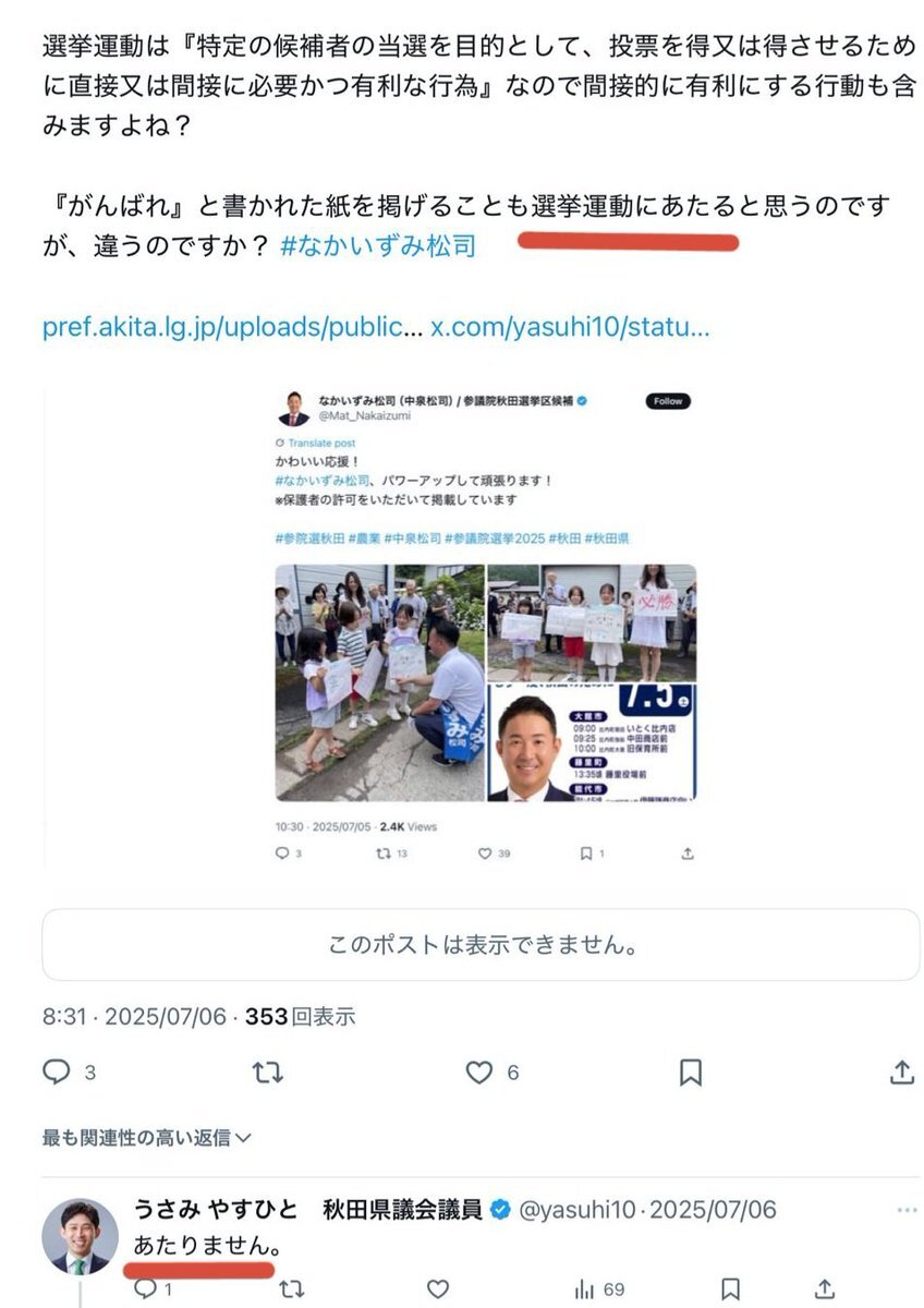 Xでキレ散らかしたり、一々反応して騒いでアピールするのが仕事じゃねーんだわ 議員で県の選挙対策だったなら、参議院選挙の時のデマの説明責任を果たせよ 流石は災害救助法が発令されてる最中にクソリプ連投するだけのことはある #自民党 #秋田県 #秋田市 #県議会議員 #宇佐見康人 #うさみやすひと pic.x.com/VCw0bsghk1