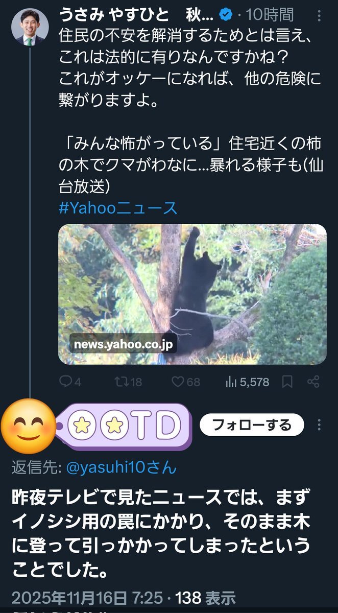 私見 #熊問題 で奮闘中(本人曰く片手間)の #自民党 #秋田県 #秋田市選挙区 #県議会議員 様がいらっしゃるが感情論( #陰謀論者や #熊原理主義)とレッテルを貼りで他者を揶揄するのではなく、粛々と対応をし酷いものには態度(法的措置)で示せばいいだけで、それが公人の役目であり倫理観の本来姿