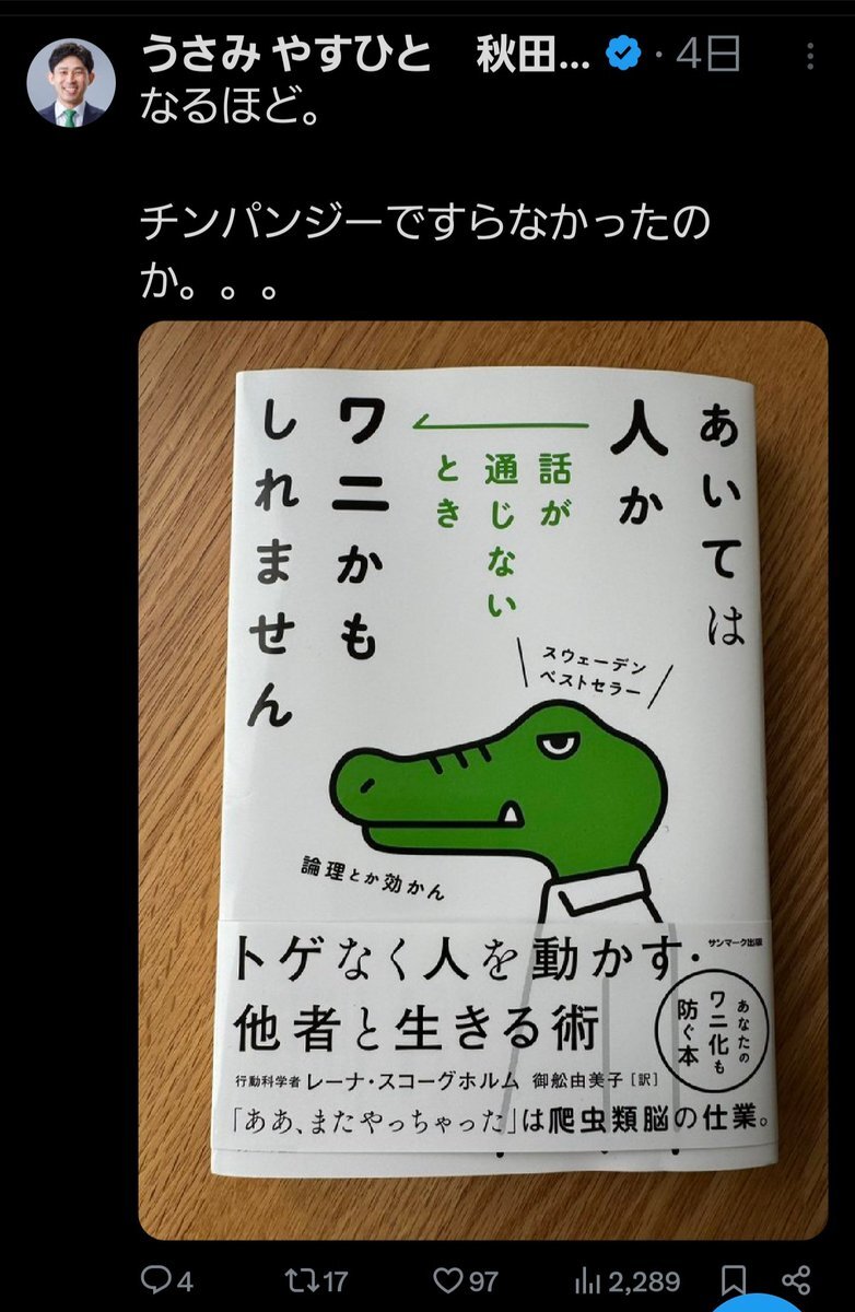 有権者に対してデマを言っておいて訂正もしないでスルーをし、人をチンパンジーや犬と比べて揶揄し見下した投稿をしたり、セクハラ投稿をしたりしている、県議会議員が言っても説得力の欠片もないんだよ😮‍💨 #自民党 #秋田県 #県議会議員 #宇佐見康人 #クマ #熊問題 #自衛隊 news.yahoo.co.jp/articles/6d333… pic.x.com/n1P85SlAma