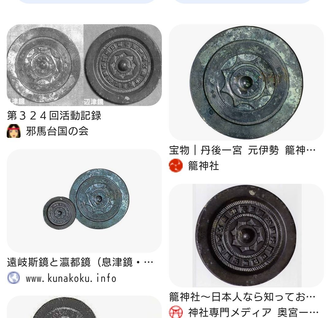 丹後国一宮 元伊勢 #籠神社 奥宮 #眞名井神社 #新羅 王子 #天日槍(#アメノヒボコ)が #垂仁天皇 に献上した神宝・ #日本書紀#古事記 に記載が有る #辺津鏡(前漢鏡 直径9.5cm)&#息津鏡(後漢鏡 直径17.5cm)(舶来かは証明困難)は、国産 #内行花文鏡(#伊勢神宮 #三種の神器 #八咫鏡 と同型(実見者証言)) pic.x.com/YL3kXjFgwu x.com/BtoDTU831Cpq76…