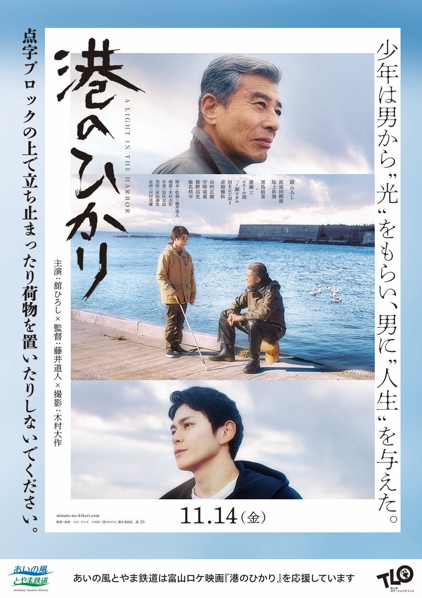 📣ℕ𝔼𝕎𝕊 ˊ˗ 映画『 #港のひかり 』× 富山県タイアップ pref.toyama.jp/810211/r071007… 𓊝𓂃 あいの風とやま鉄道・富山地方鉄道の 電車内で 主演 #舘ひろし さんによる 車内アナウンスを10/14 (火)〜 放送⸝⸝⸝⋆ 𓊝𓂃 車内や駅構内にコラボポスターも登場⟢˖ 富山県警察とのコラボにもご注目.ᐟ.ᐟ