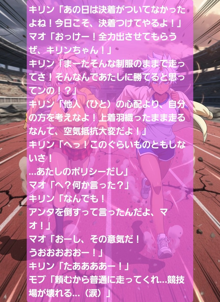 おはようございます☀ 昨日は年賀関係の葉書作りで疲れたね〜💦 今日はお掃除と自宅芋煮作りするよ〜! んでもって、今日は久々の #真央ちゃんシリーズの日常#フリー台本 ですぜ! マオちゃんとキリンちゃんと言えば、超スピード徒競走でしょ!🤣 では、今日も寒いですが、良き1日を!✨ pic.x.com/NUG9qRGuZC