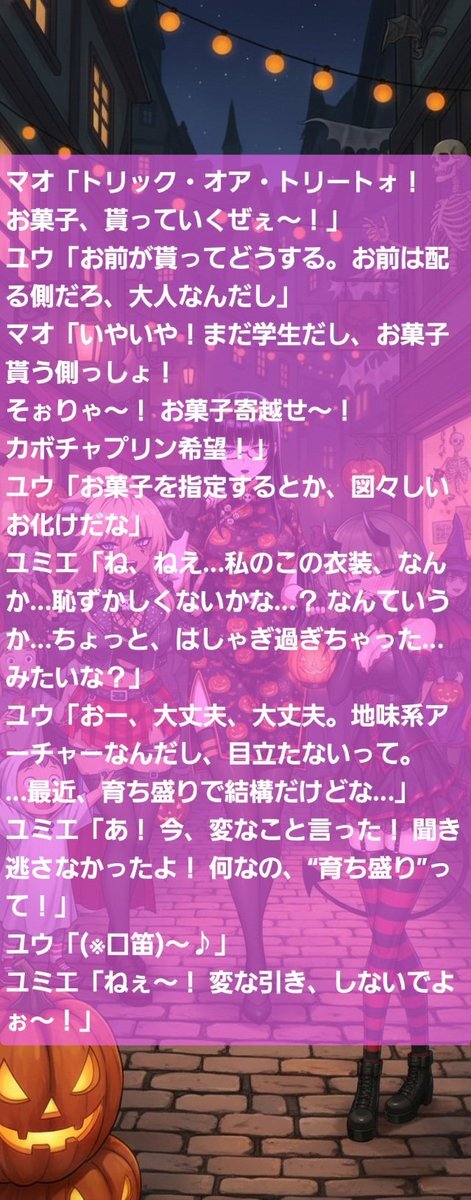 おはようございます☀ 今日はハロウィン! ということで、 #真央ちゃんシリーズの日常 でもハロウィン向けの #フリー台本 をば! いやー、ハロウィンコスはちょっと悪堕ちっぽくて良いですな😏 さて、今日も寒いですが🥶風邪など引かぬよう、頑張りましょ! では、今日も良き1日を!✨ pic.x.com/mUu5VyRWBk