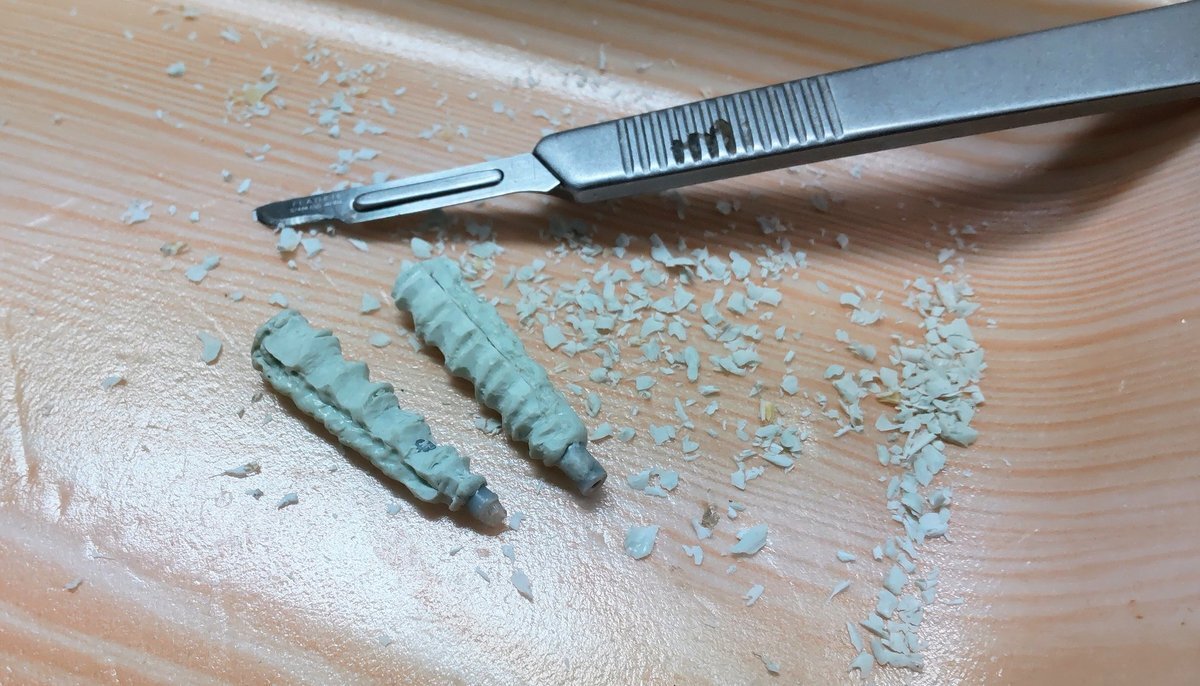 昼休みを利用して、昨日パテを盛っておいた液化窒素ボンベを骨らしく削っておりました。腕の陰に隠れて見えなくなるかもなのに、アホだから。さらに大方削り終えた後、削りカス対策に宮崎ハヤオ監督タイプのエプロンを身に付ける。アホなので… #真実一路 #ホネーネン #タマミー #ホネーネン2025 pic.x.com/jJxvtzNHzt