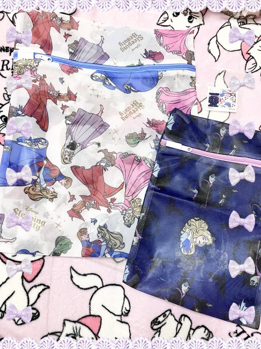 ブライアローズ、オーロラ姫、妖精、フィリップ王子、マレフィセント💜💙🩷💚 前髪クリップとキーホルダーに保護シール付いてて、前髪クリップの裏ちゃんと剥がせるような形のシールでちょっとびっくり😳 洗濯ネット濃い色が洗濯物に色移りしないか確認しなきゃ🧺🫧 #眠れる森の美女 #サンキューマート pic.x.com/syxMtY05sE x.com/jpmarieprinces…