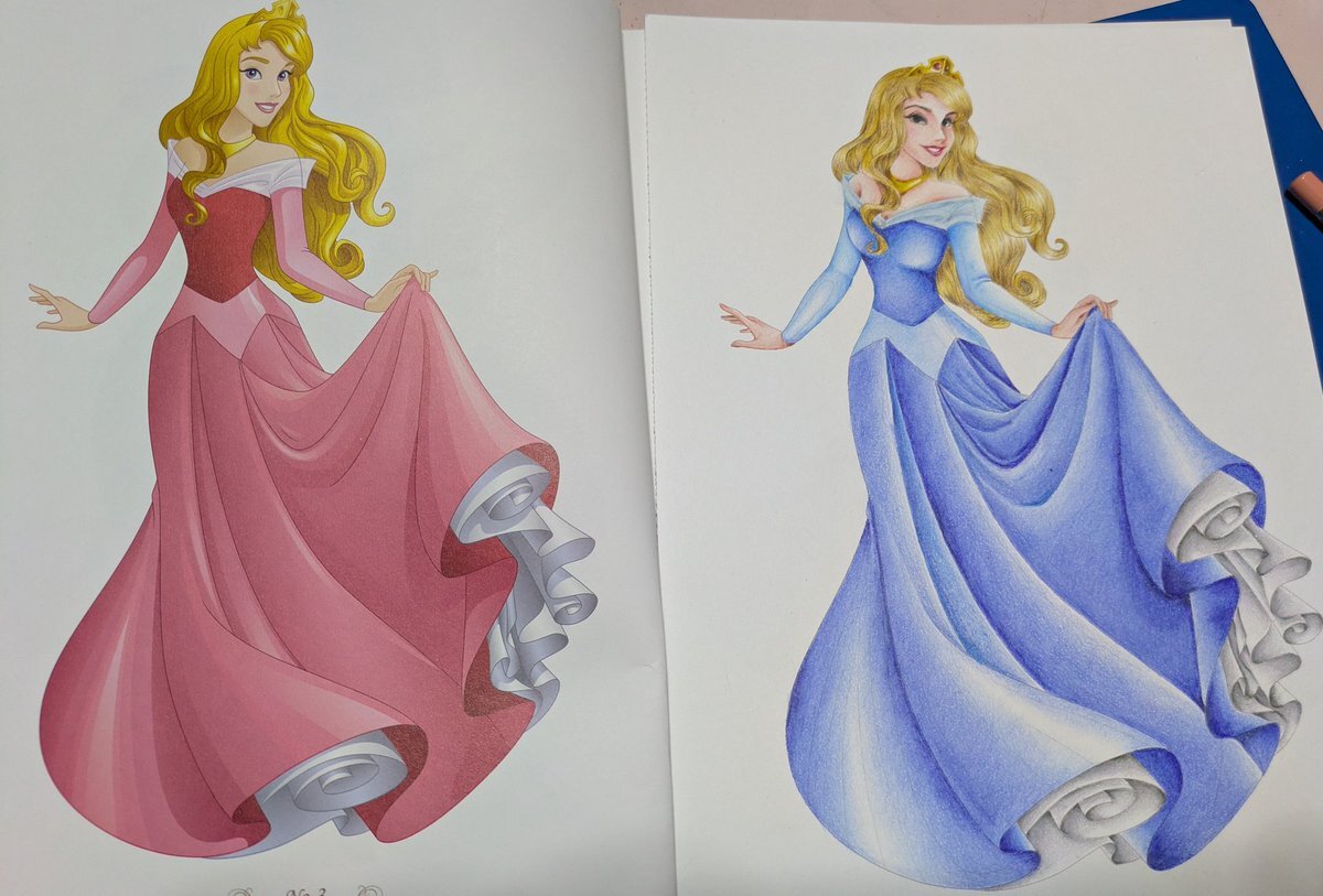 どうしてもオリジナルのオーロラ姫が好きなので少しだけお顔を直しました😤あとは背景!こうしたいっていう構想はあるけど果たして自分に塗れるのか… 褒められて調子に乗って頑張れるタイプなのでよかったら褒めてください #大人の塗り絵 #オーロラ姫 #眠れる森の美女 pic.x.com/XeDiHq6DL1