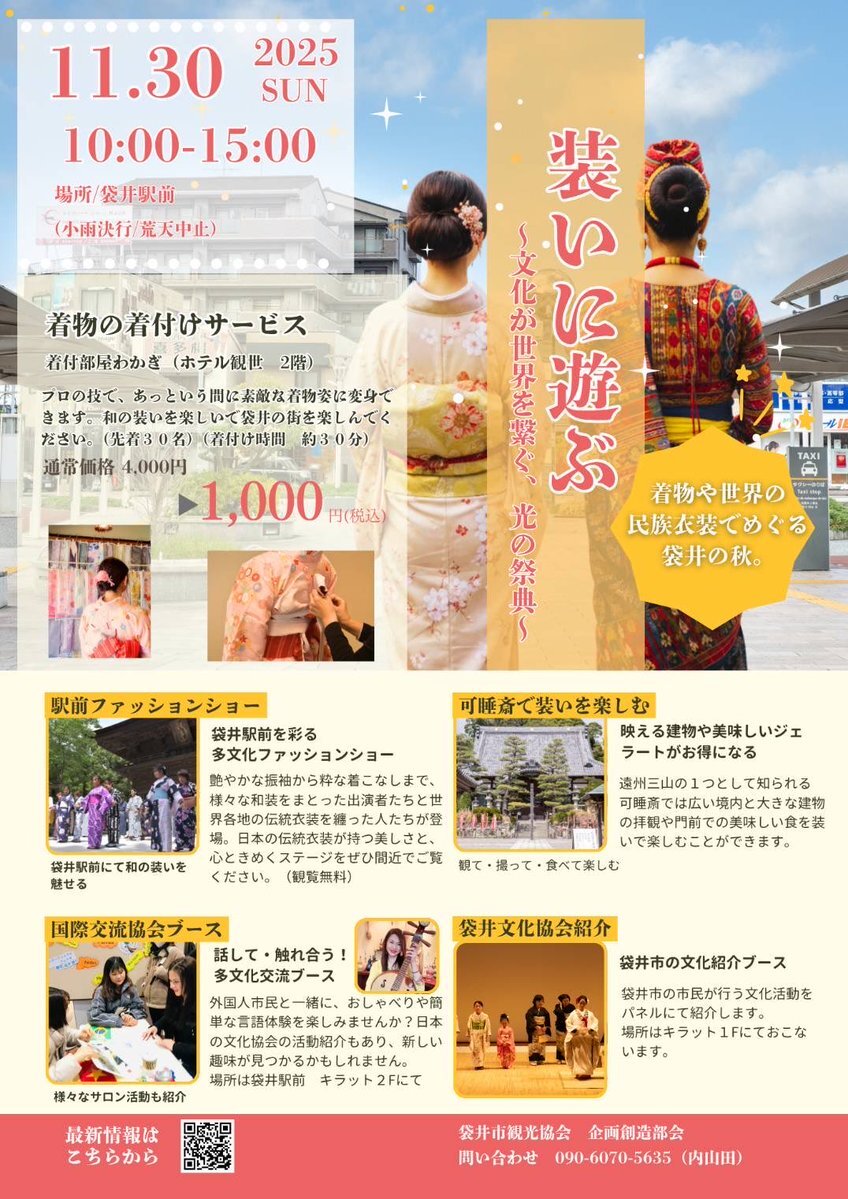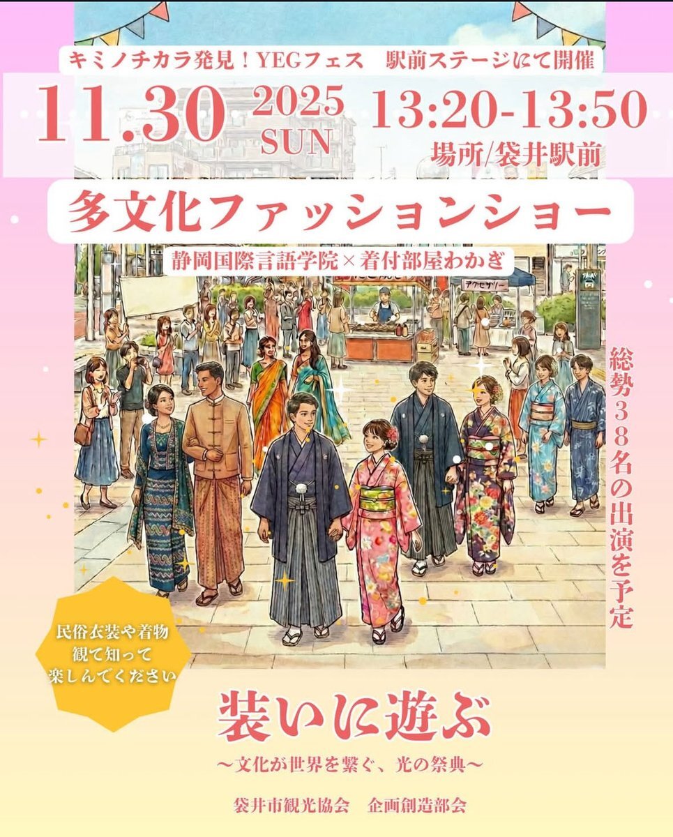 明後日11/30(日)は【フクロイエキマチフェスタ】へ是非お越しください✨袋井駅前ステージにて、多文化ファッションショーに参加させていただきます🙇‍♀️よろしくお願い致します #エキマチフェスタ #袋井 #多文化ファッションショー #着付け #fukuroicity pic.x.com/RrmJXzhQ3T