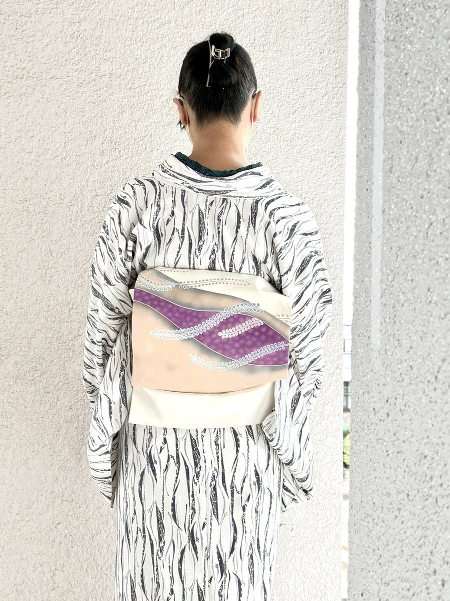 雨が本降りの予報が出てたから、着物は諦めるか~ してたけど、朝起きたら小降りなんだもの、急いで一式出したわよね(笑)。 濡れようが汚れようが構わないポリで柄のテイストからすると二択。長いこと座るから帯はボリューム出さない。 防寒兼ねて雨コート。 #今日の着物 #着物自画撮り部 pic.x.com/hyxDBlA6G5