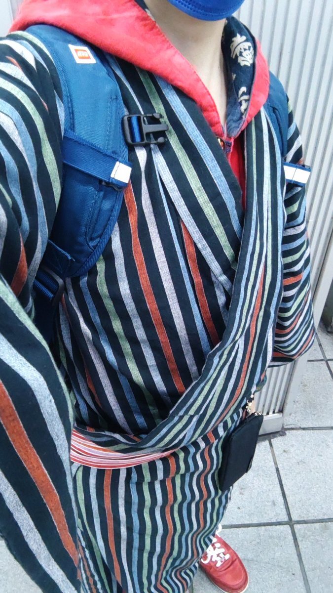 昨日はお堅いコーデだったので普段通りで。 今日は赤がポイント。 @someorikodama さんで仕立てた片貝木綿に自作パーカーと自作帯、赤NIKE。 #きものサローネ #着物にリュック #着物にスニーカー #パーカーイン着物普及協会 #男の着物姿 #我流流 #着物自画撮り部 #kimono #着物 #男着物 #着物男子 pic.x.com/0pY2YjTV5e