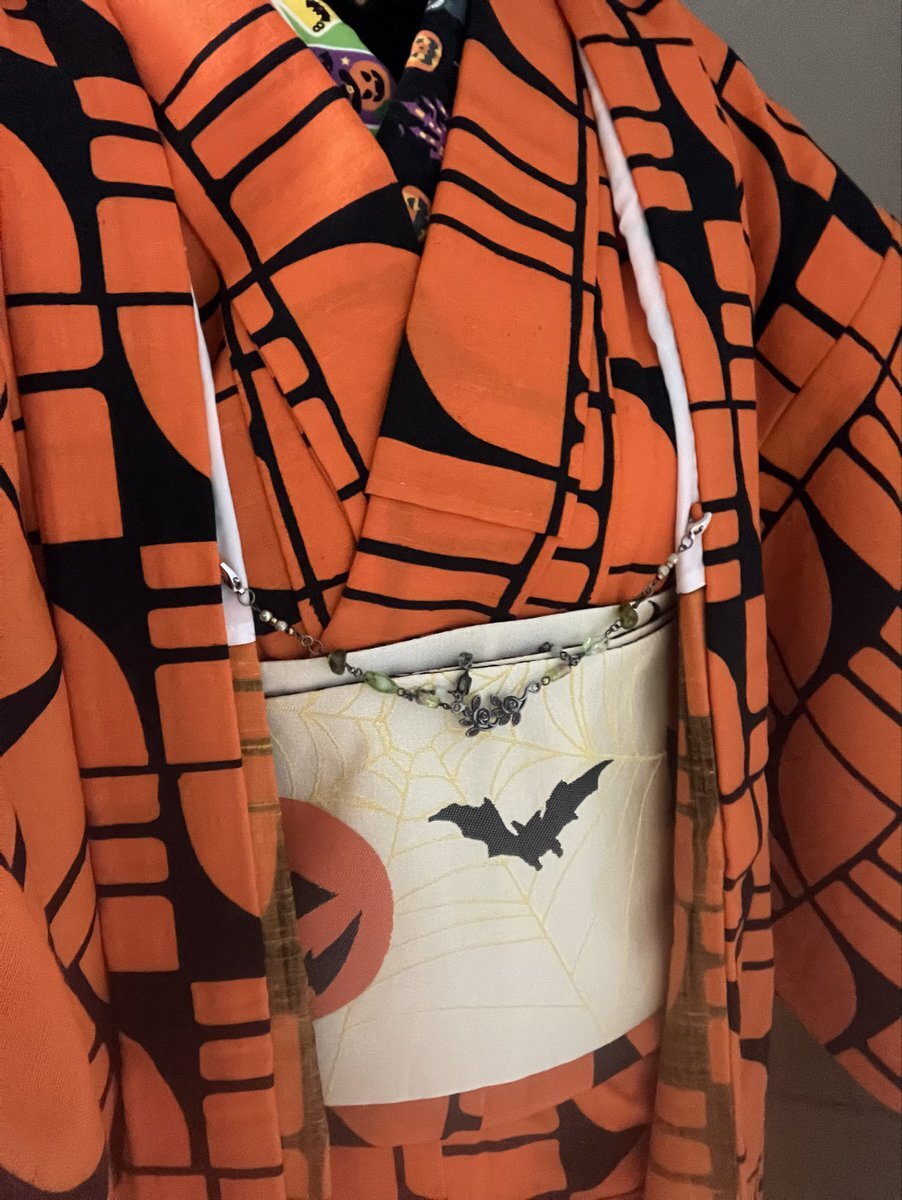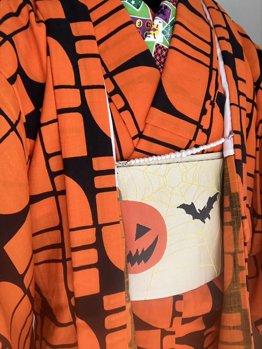 昨日のコーデ。 レジンの魔女の帯留、使わない時は缶にしまっているけど、何年も前に購入したものだから退色してしまった。 #着物自画撮り部 #今日の着物 #普段着物 pic.x.com/vpxXE9vzEI