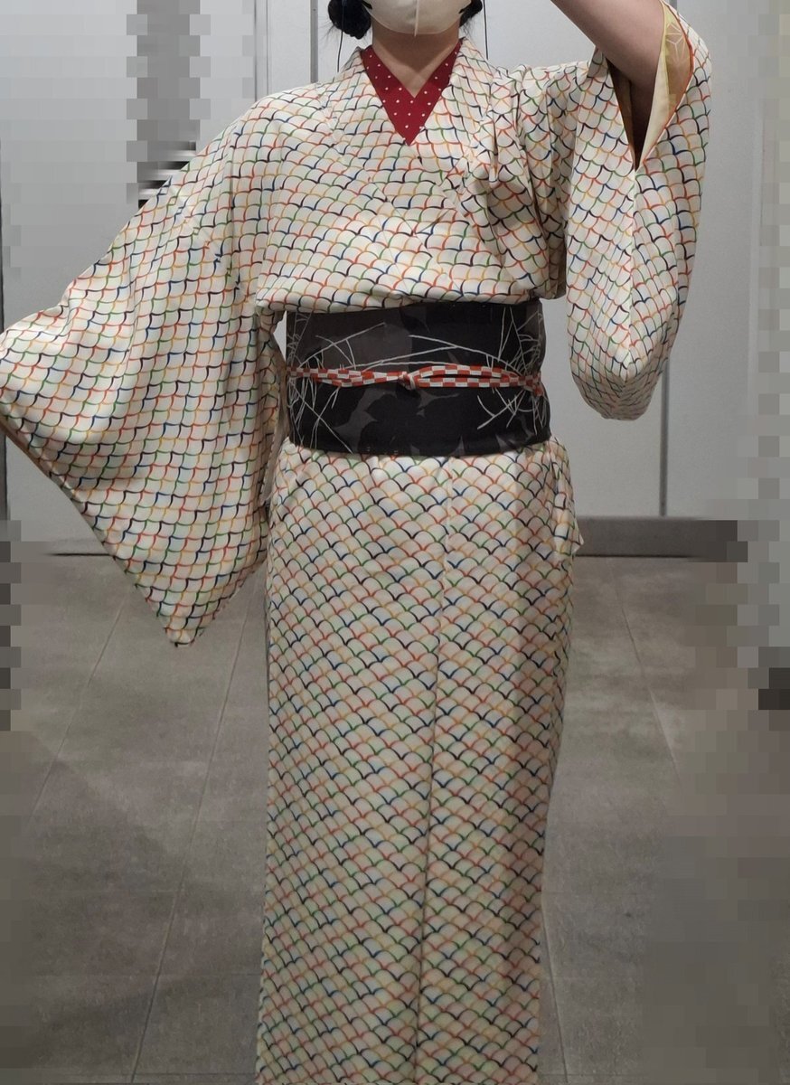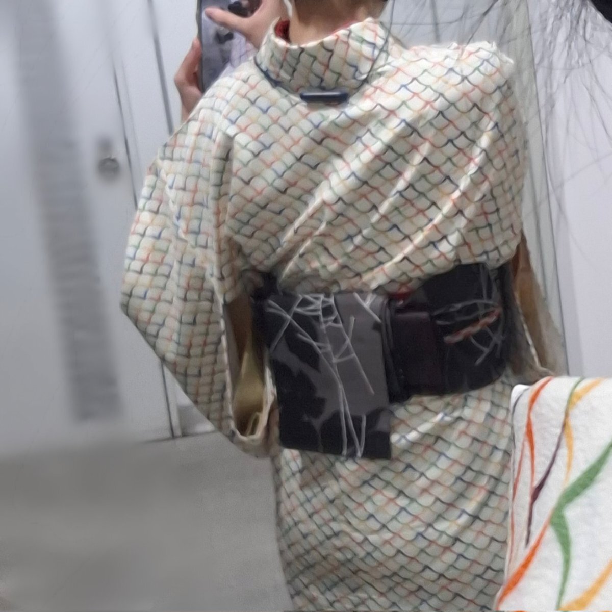 昨日、知人からウール着物を何枚も譲り受けました。 状態がいい! 趣味もいい! 早速、秋らしい色味のものを着て出掛けました。 #着物自画撮り部 #今日の着物 #普段着物 pic.x.com/vAOJAPUPnW