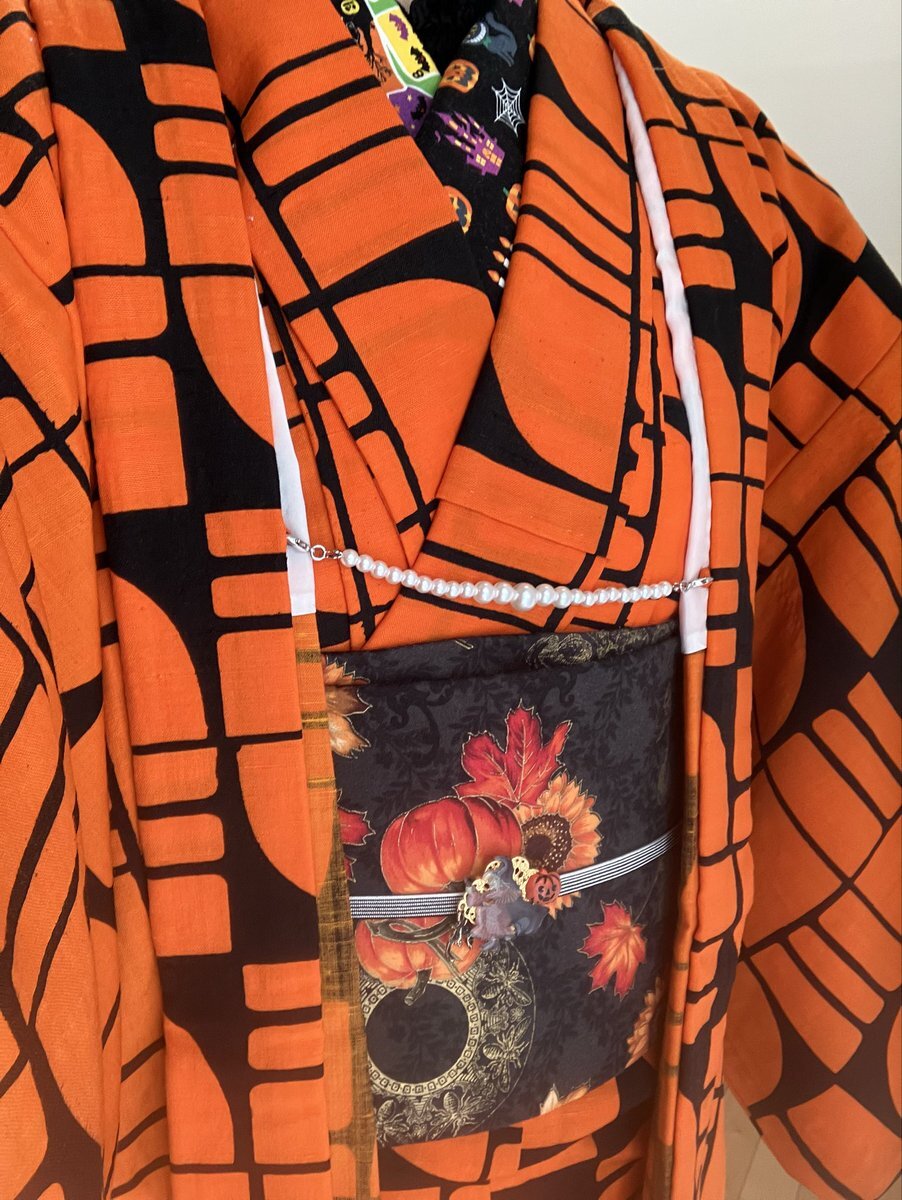 昨日は赤系統でまとめました。 今日は、「このオレンジのが秋らしいかな」 履き物は駿河塗り下駄。ちょっと端の方の塗りが削れてきた。履いてたら仕方ないね……。 #着物自画撮り部 #今日の着物 #普段着物 pic.x.com/02a6meB361