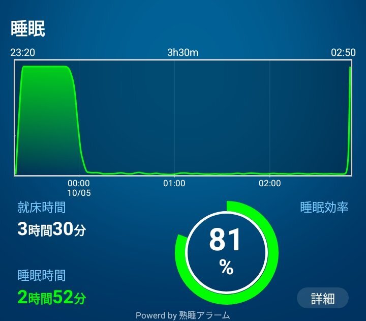 ゆうべの睡眠記録 23:30就寝 ほとんどぐっすり眠れた。 そして、2:50起床 睡眠時間3時間20分 #睡眠記録 jukusui.com/jukusuiappdl.p… #熟睡アラーム pic.x.com/b6GYjOmd1A