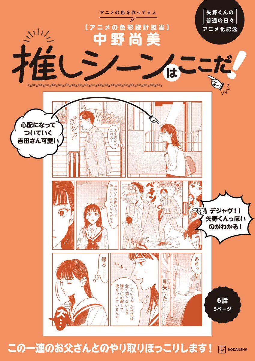 \🩹矢野くんファミリーの推し語り!❤️‍🩹/ 今回の語り手は、アニメの色彩設計ご担当の中野尚美(@naomi_nakano_8)さん! 🎬第6話・5ページ 「お父さんとのやり取りほっこりします!」 アニメの色味おしゃれすぎます!!!原作担当より #矢野くん推しシーンはここだ pic.x.com/9DrMCTokzo