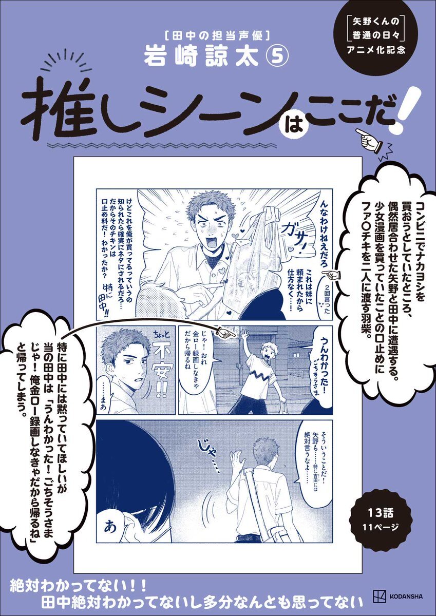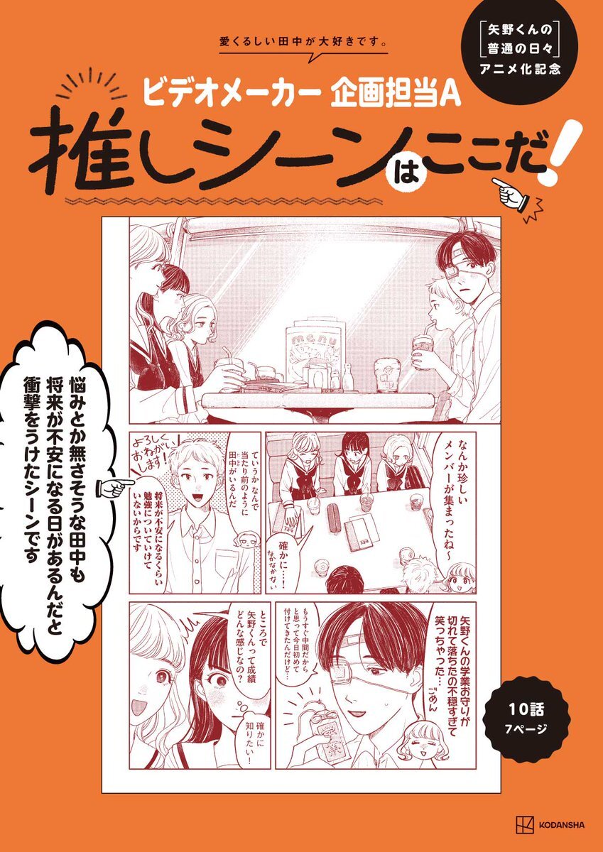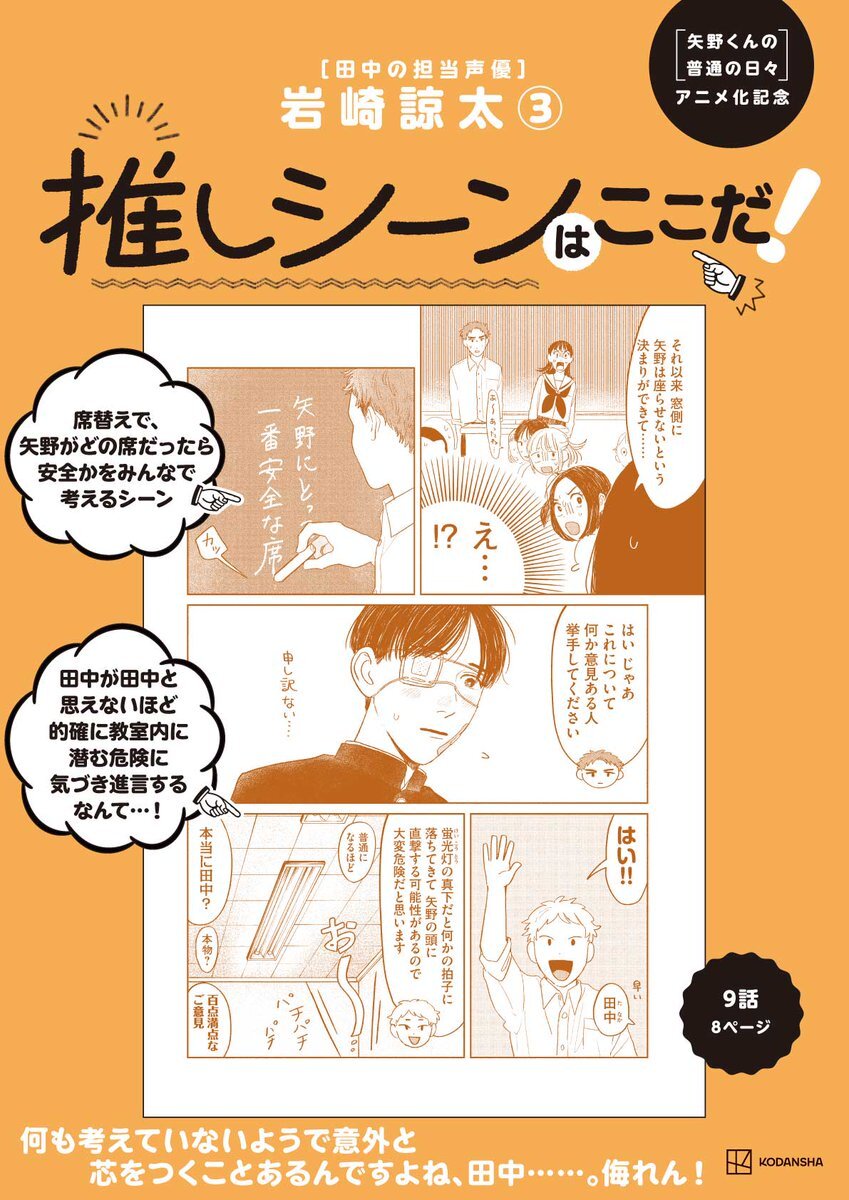\🩹矢野くんファミリーの推し語り!❤️‍🩹/ 今回の語り手は、田中役 #岩崎諒太 (@zurixzuri )さん二回目!! 🎬第8話・10ページ 「本当に高校の時、放課後によく友達と…」 アニメのダイナミックシーンも要注目✨ #矢野くん推しシーンはここだ