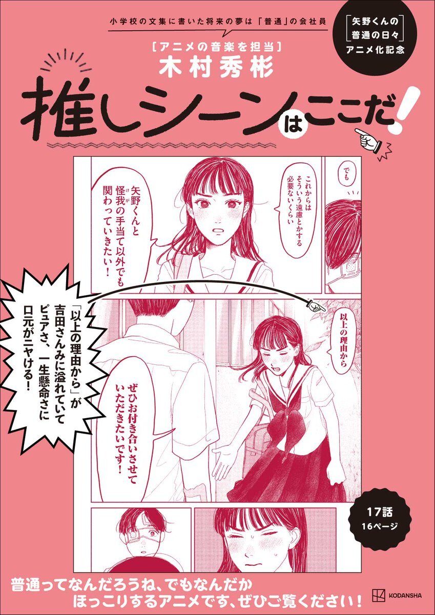 \🩹矢野くんファミリーの推し語り!❤️‍🩹/ 今回の語り手は、音楽をご担当いただいている木村秀彬さん! 「普通」の会社員…ではないかもしれませんが、アニメを丁寧にやさしく、音楽で彩っていただいています🎶 #矢野くん推しシーンはここだ pic.x.com/QwxmKPQDhO