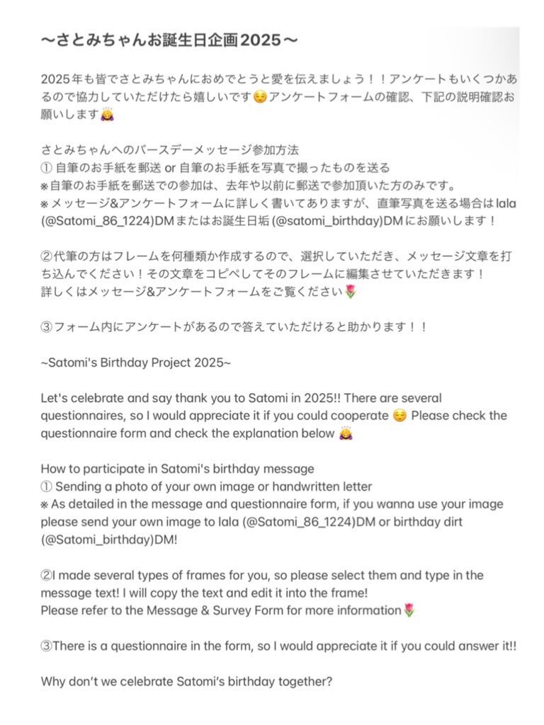 . 今年もこの時期がやってきました🌷 よろしくお願いします〜!!! 産後復帰したさとみちゃんへみんなで 今年も愛とおめでとうを伝えましょう❤︎ #石原さとみ #さとみん会  #石原さとみお誕生日企画 pic.x.com/YW3xGTaZAF x.com/satomi_birthda…