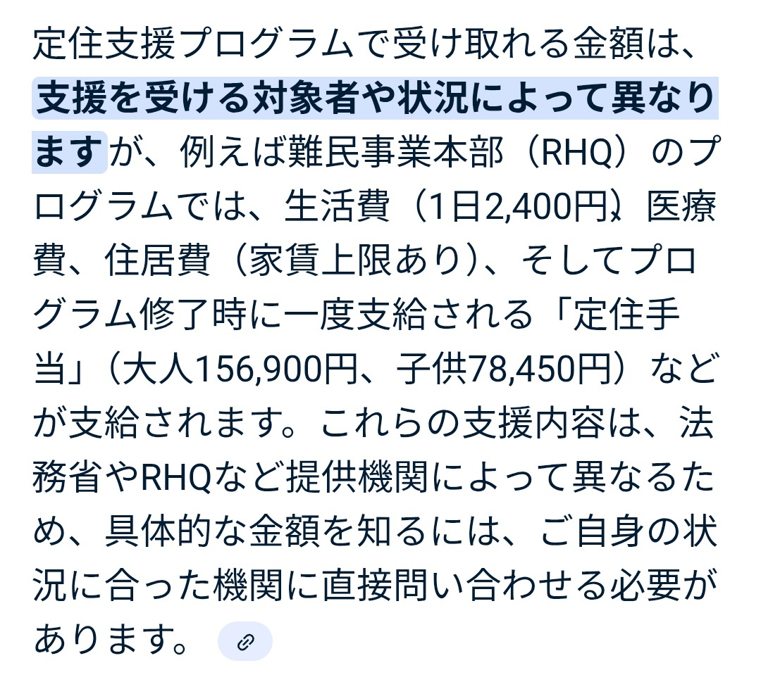 外国人の定住支援 大人156,900円子供78,450円 日本人は引越ししてもお金貰えないのに 外国人は定住するのに お金をもらえるのって ①外国人ファースト ②日本人差別 ③その他 絶対におかしいよね!