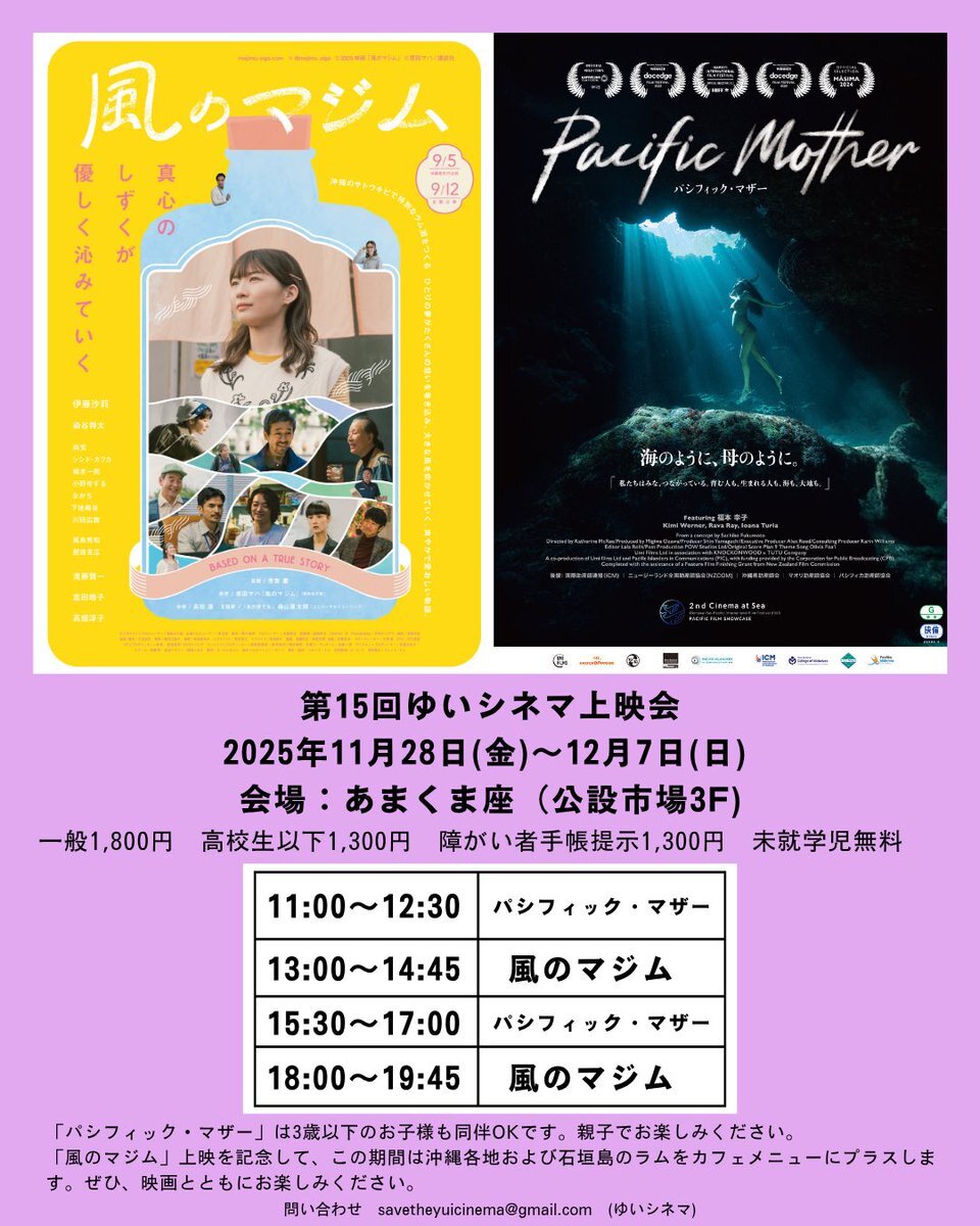 #伊藤沙莉 主演 #原田マハ 原作✨ 映画『#風のマジム@majimu_eiga 🎥#ゆいシネマ(会場 #あまくま座)🆕 🌟11/28(金)公開🌟 沖縄県 #石垣市 で新たに上映開始うれしい✨ コルコルなどラム酒も飲めるの最高🎵 【11/28(金)~12/7(日) 】 1日2回上映 13:00~,18:00~ #森山直太朗 #あの世でね 主題歌 pic.x.com/3chv4qQSm7 x.com/yuicinema/stat…