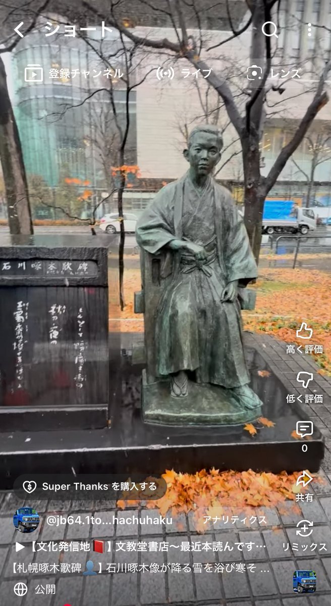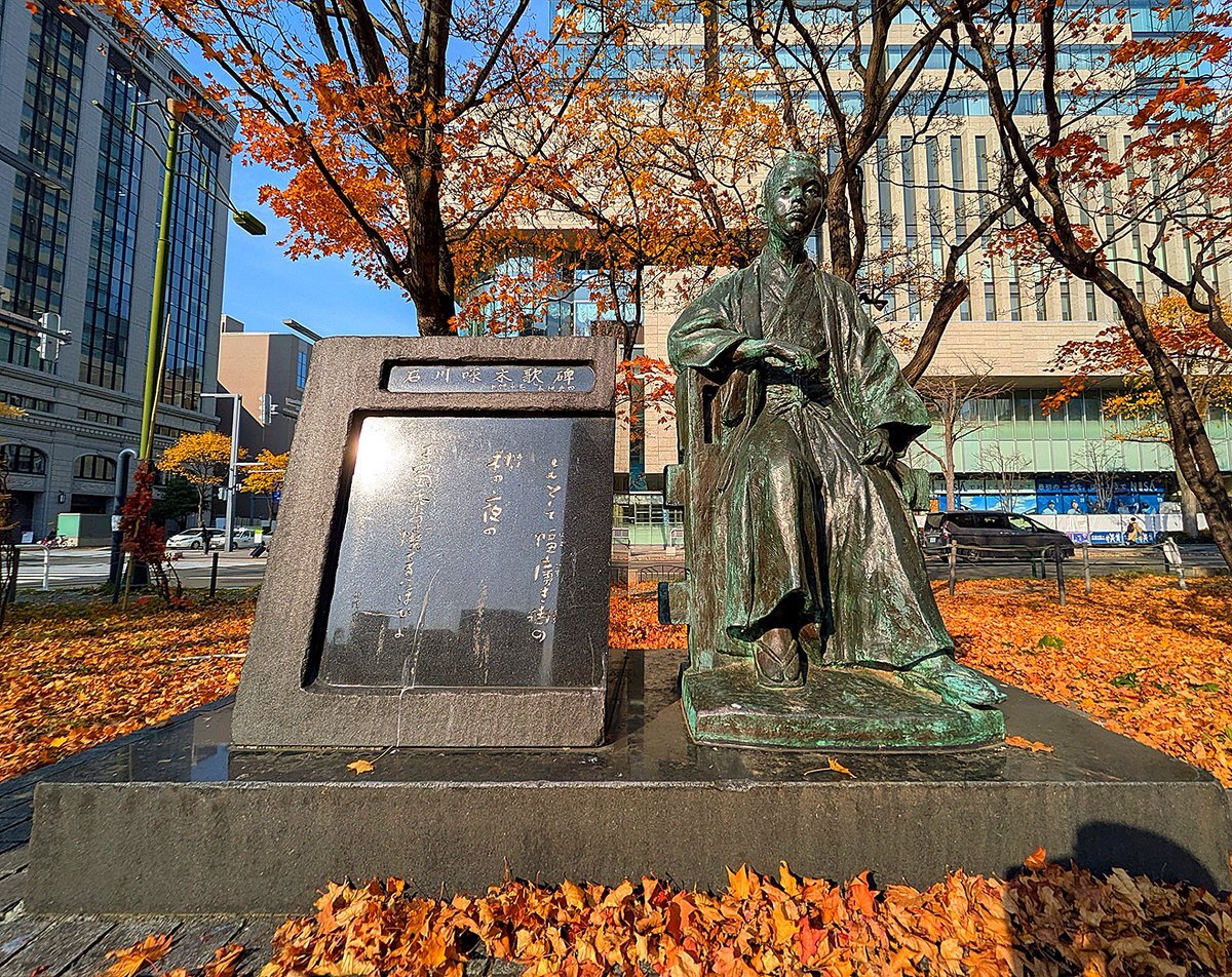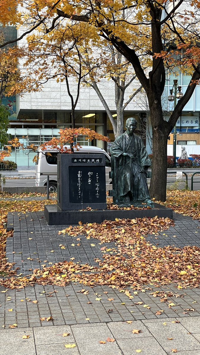 #石川啄木 絶賛公開中の「ゴールデンカムイ札幌ビール工場編」でも大活躍の石川啄木。 札幌にも短期間住んでいて、 大通公園三丁目に歌碑と像がある✨️ 「しんとして 幅廣き街の 秋の夜の 玉蜀黍の焼くるにほひよ」 幅廣き街=札幌(笑) 玉蜀黍=トウモロコシ とうきびワゴンは10月末まで🍁 pic.x.com/7hbzpK8eZd