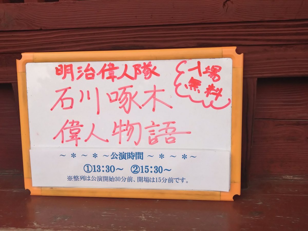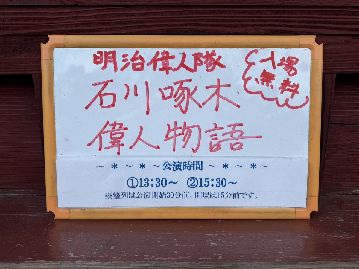 2025.11.08 偉人物語 石川啄木編 初演 ついに啄木さんの偉人物語を✨ とても素晴らしいものでした!!!! ・ 本日もお話くださった方、ありがとうございました✨️ ・ 生誕ブロマイド,ボウシ🧢ありがとうございます😊 #明治偉人隊 #石川啄木 #偉人物語 pic.x.com/gK22vQmAa9