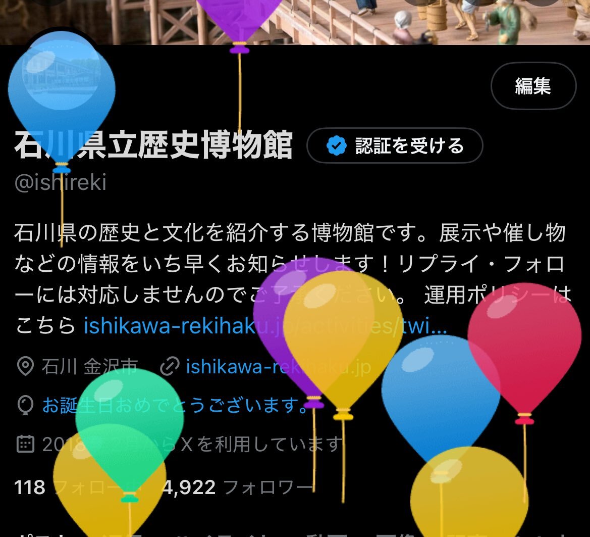 すっかり遅くなってしまいましたが… \🎂Happy Birthday🥳 #石川県立歴史博物館/ 当館は昭和61年(1986)10月25日に開館しました。 今年で39歳㊗️ 今後ともどうぞよろしくお願いいたします🙏 pic.x.com/vSC9woEp3j