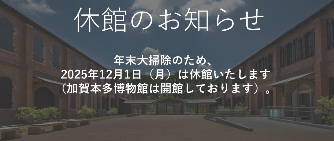 【休館日のお知らせ】 2025年12月1日(月)は年末大掃除のため臨時休館いたします。 ご理解のほどよろしくお願い申し上げます。 #石川県立歴史博物館 pic.x.com/PCMCdPDR5l
