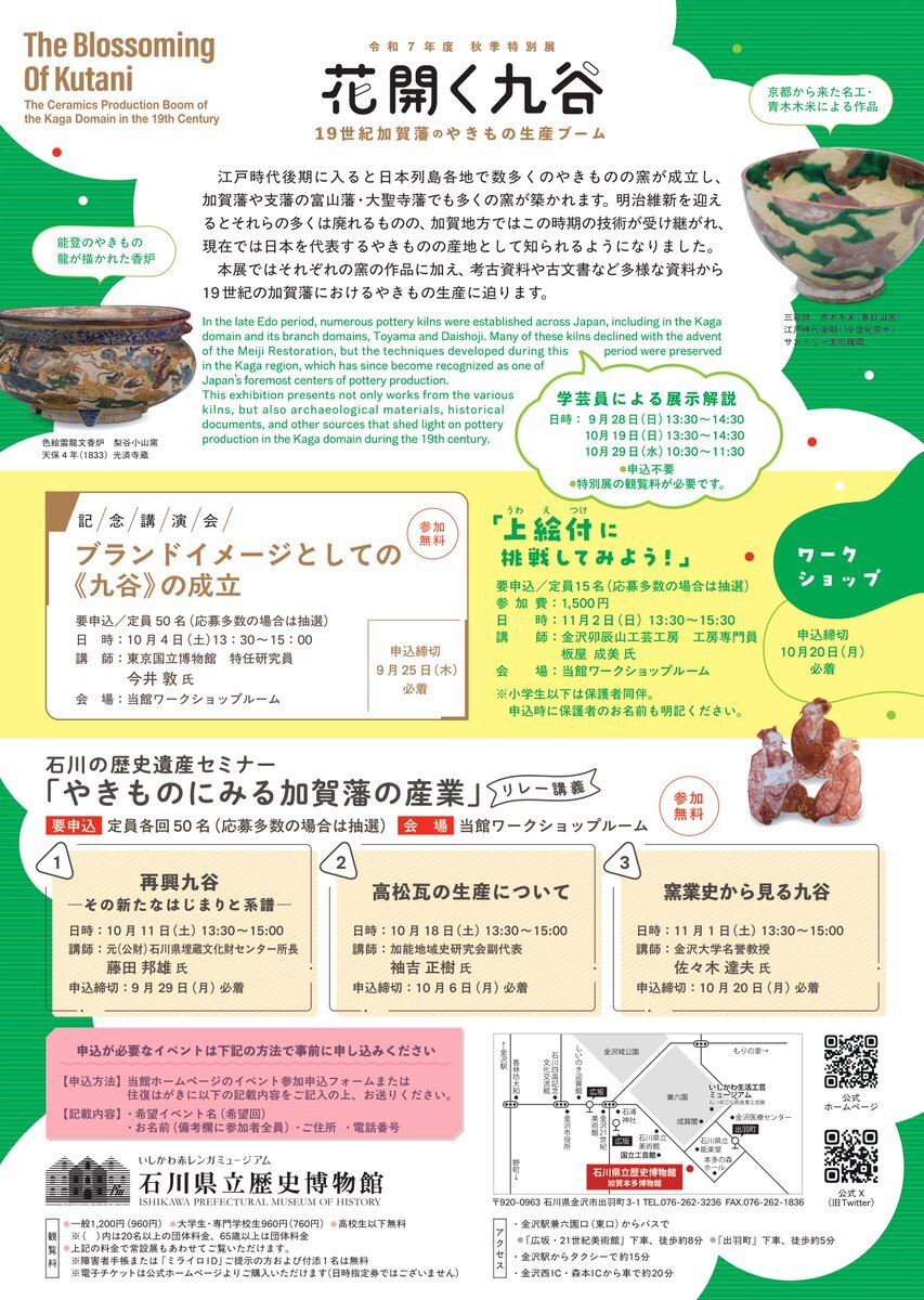 令和7年度秋季特別展 「花開く九谷―19世紀加賀藩のやきもの生産ブーム―」 11月9日(日)まで金沢市の 石川県立歴史博物館で ishikawa-rekihaku.jp/special/specia… #Kanazawa #Japan #KutaniWare #九谷焼 #やきもの #金沢市 #石川県立歴史博物館 pic.x.com/tRyhASIsXp
