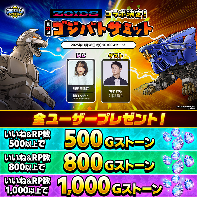 📢【第17回 ゴジバトサミット】開催決定📢 放送は【11/26(水) 20:00頃】よりスタート!🎥 ゲストとして「ゴジラ S.P」有川ユン役・石毛翔弥さんが出演!🎉 MCとして加藤里保菜さん、樋口タカトPも出演いたします!🎶 また本投稿のいいね&RPの合計数に応じて
