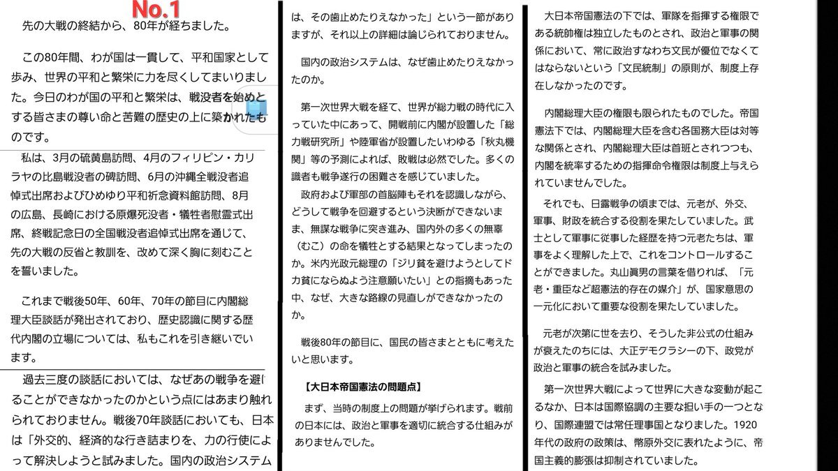 返信先:@shigeruishiba所感に日本の加害の事実に対する踏み込んだ発言がなく残念でした。 その一方、何故戦争を回避できなかったかの考察や、「一人一人が先の大戦や平和のありようについて能動的に考え」るという発言は聞いた者、読んだ者各自の考えるきっかけになったと思います。 お疲れ様でした。 #石破総理ありがとう