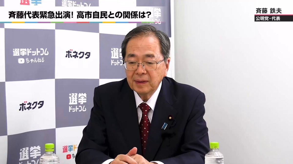 公明党の斉藤代表、決戦投票で高市早苗氏への投票を匂わせる。   「決戦投票では、野党ですから、”斉藤鉄夫“と書いて無効投票するのが通常ですが… これまで一緒に与党での信頼と実績があります。自民党とは敵対して別れたわけではないので…」