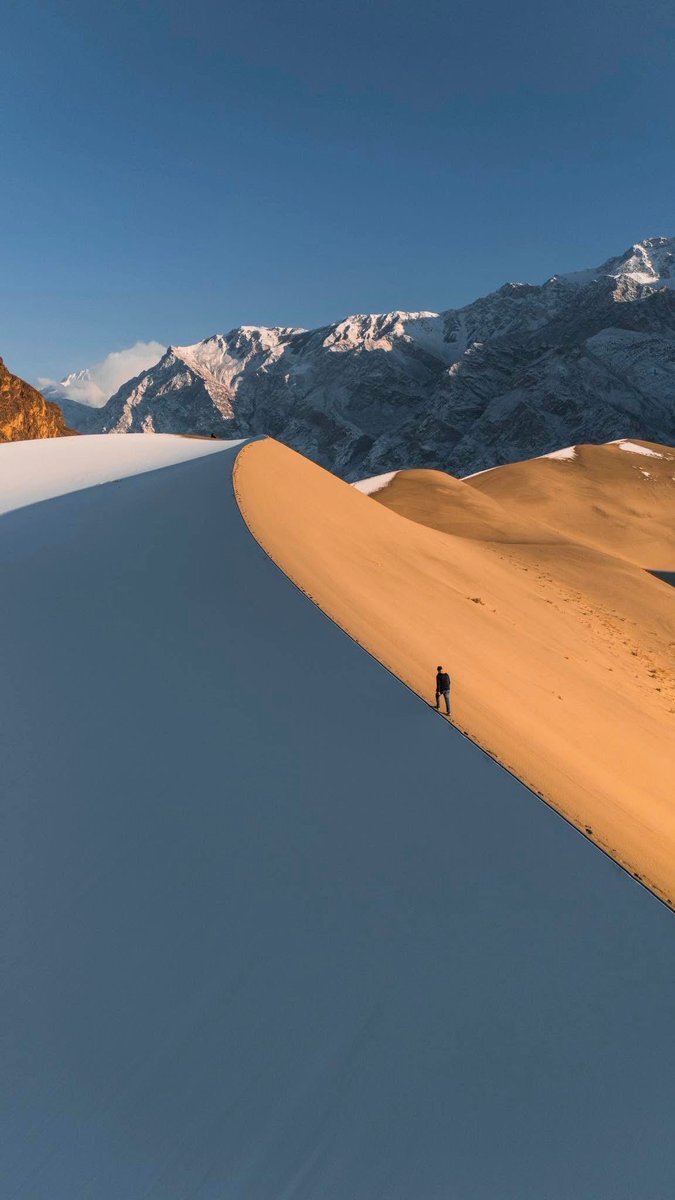 雪に覆われた砂漠 Sarfranga #砂漠。スカルドゥのインダス川沿いにあるサルフランガ寒冷地砂漠 Sarfranga Cold Desertです。標高2,500m付近の高山に囲まれた乾燥した荒地が寒冷地砂漠と呼ばれ、インダス河畔の砂が美しい砂丘を創り出しています。 📸 Abrar Khawja pic.x.com/5cz9ZN0lWi