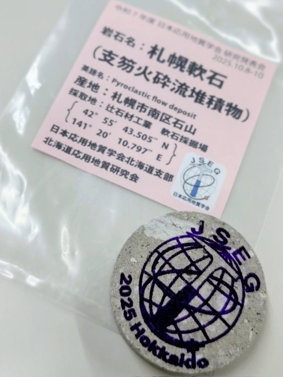 日本応用地質学会のポスター発表会場で、札幌軟石のサンプル貰いました! 採取場所の情報もバッチリ♡ #札幌軟石 #日本応用地質学会 #研究発表会 pic.x.com/9zAMi1h10h