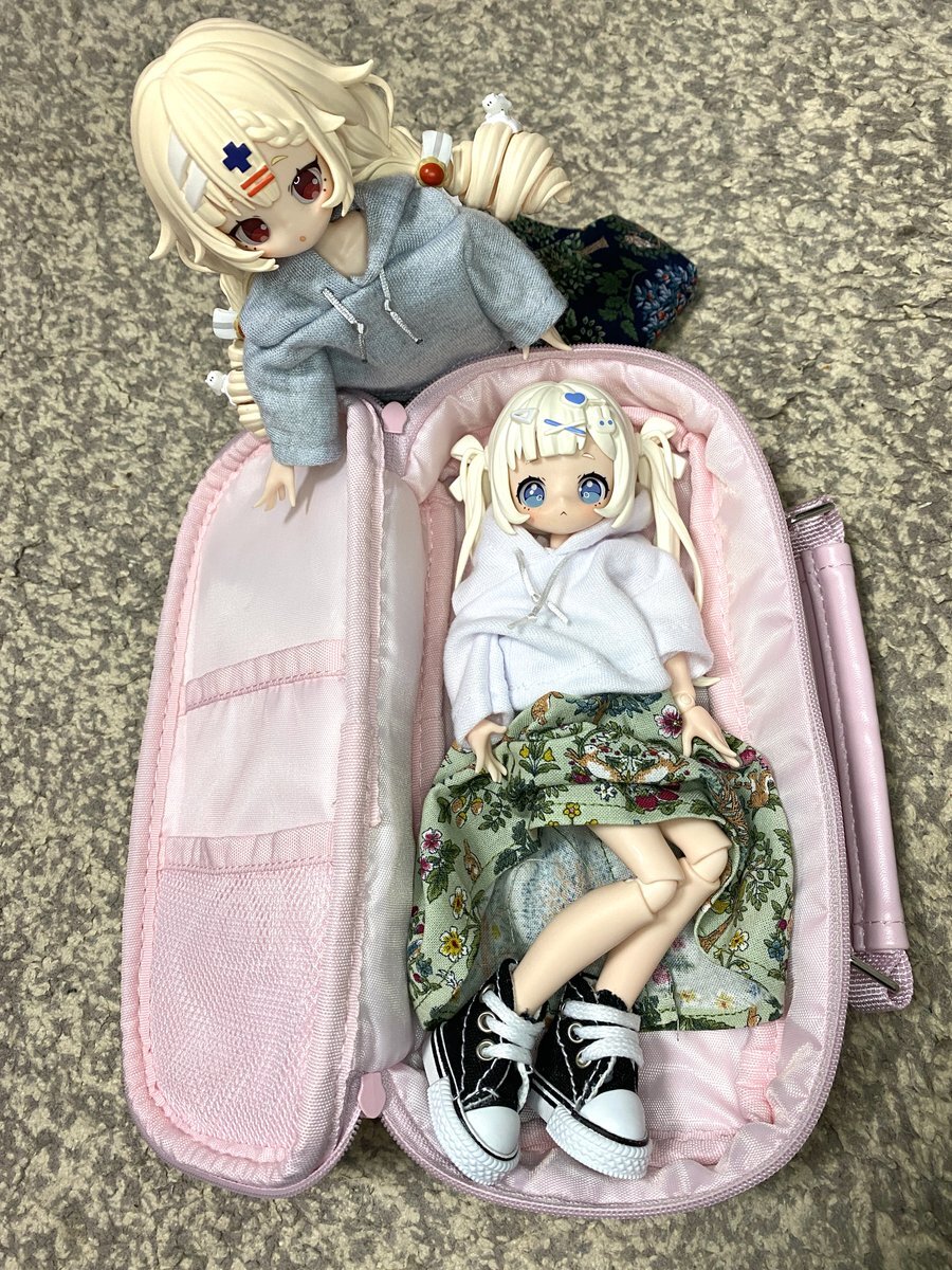 移動用に持ち手付きペンケース使用ですが、1/8ドールはこう! 足を曲げたら入るけど、ヘアパーツによっては蓋が閉まらない…ボニバニちゃんは耳付きで余裕です🐰 #SugaryGirls #砕星軌跡 pic.x.com/v8fBOVjpJs