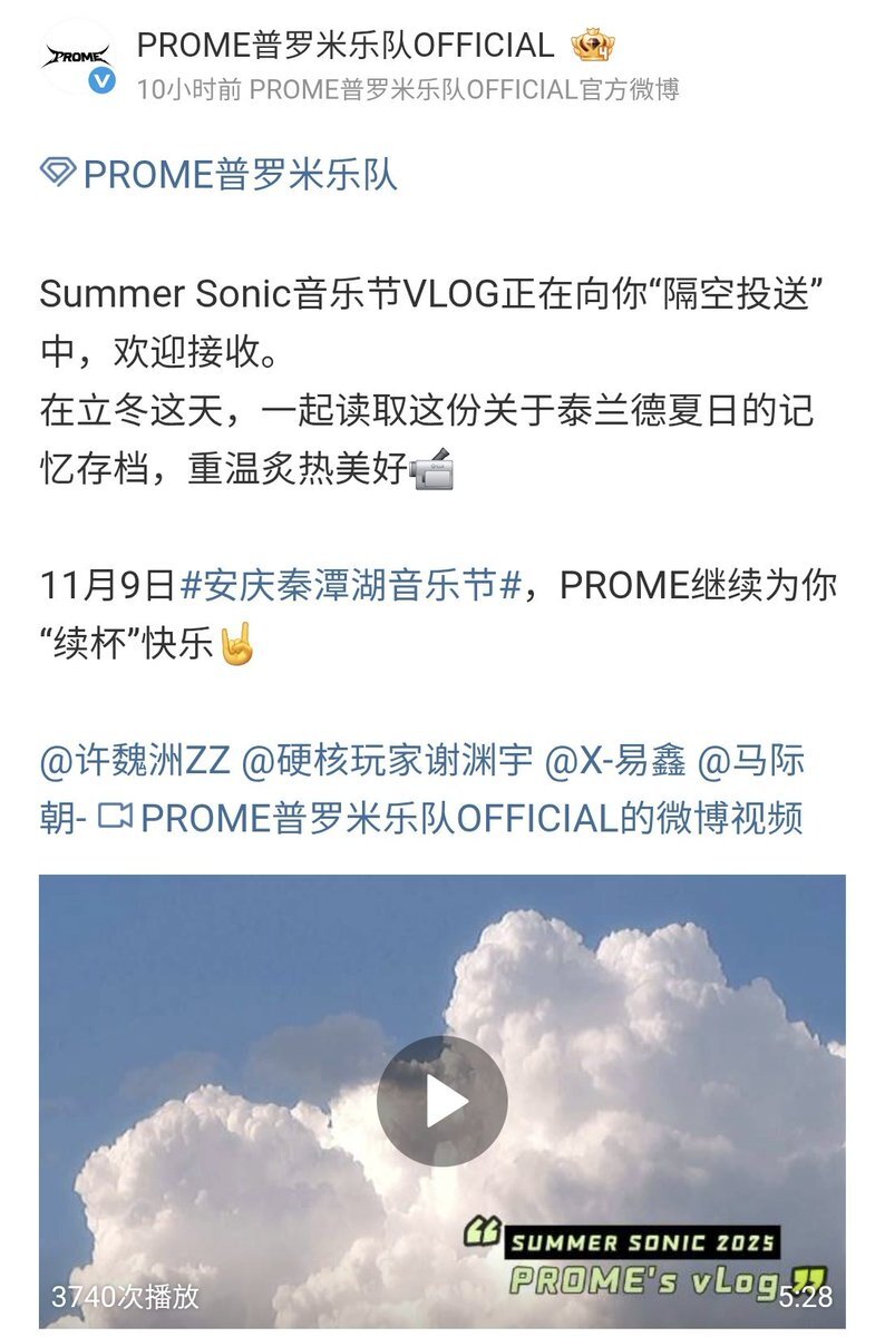 また映像出してくれた!(੭ु ›ω‹ )੭ु⁾⁾💕 PROME乐队 x Summer Sonic ✨ ありがとう、ありがとうみんな。😭✨ full🔗 ※4分26秒 weibo.com/7988759116/Qcy… cr.PROME普罗米乐队OFFICIAL #許魏洲 #xuweizhou #timmyxu #硬核玩家谢渊宇 #X易鑫 #马际朝 #PROME pic.x.com/gl2rsPJCCh