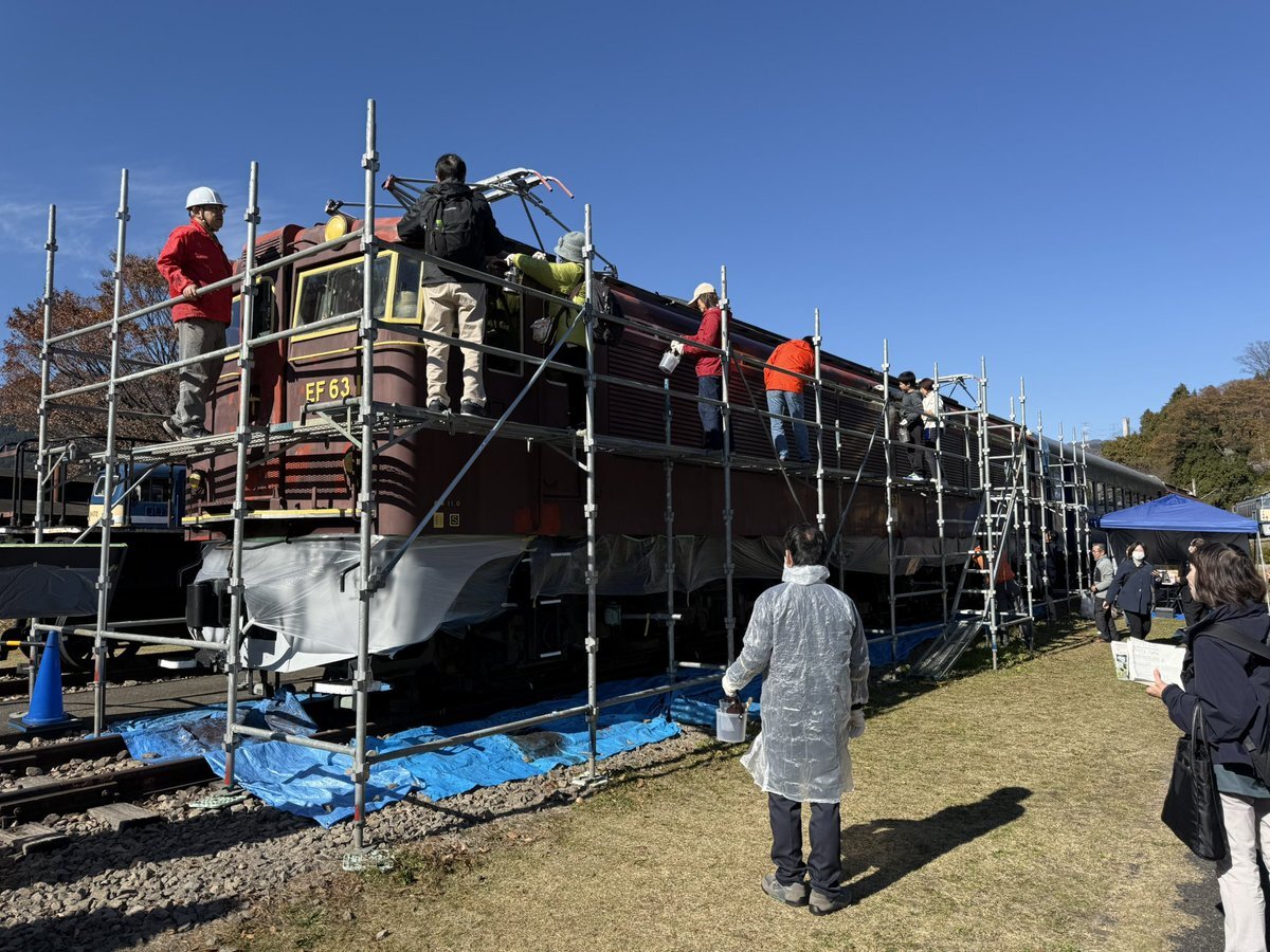 本日は鉄道文化むらにて、ペイントイベントが開催されました。 今年は例年より増えた3両で、一般参加者はEF59、鉄道OB会はEF80、びゅうツアー参加者とJR社員の方にはEF63-1を塗っていただきました。 #碓氷峠鉄道文化むら pic.x.com/NgMoGoFP5u