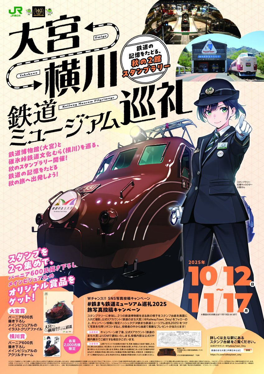 「大宮⇔横川鉄道ミュージアム巡礼」にはもう参加してくれたかな?🚃参加は11月17日(賞品引き換えは11月19日)までなので忘れずにね✨みんなの旅写真投稿も待ってるよ~📸#鉄道のまち大宮 #鉄まち鉄道ミュージアム巡礼2025 #鉄道博物館 #碓氷峠鉄道文化むら pic.x.com/bdBDWhlMD0