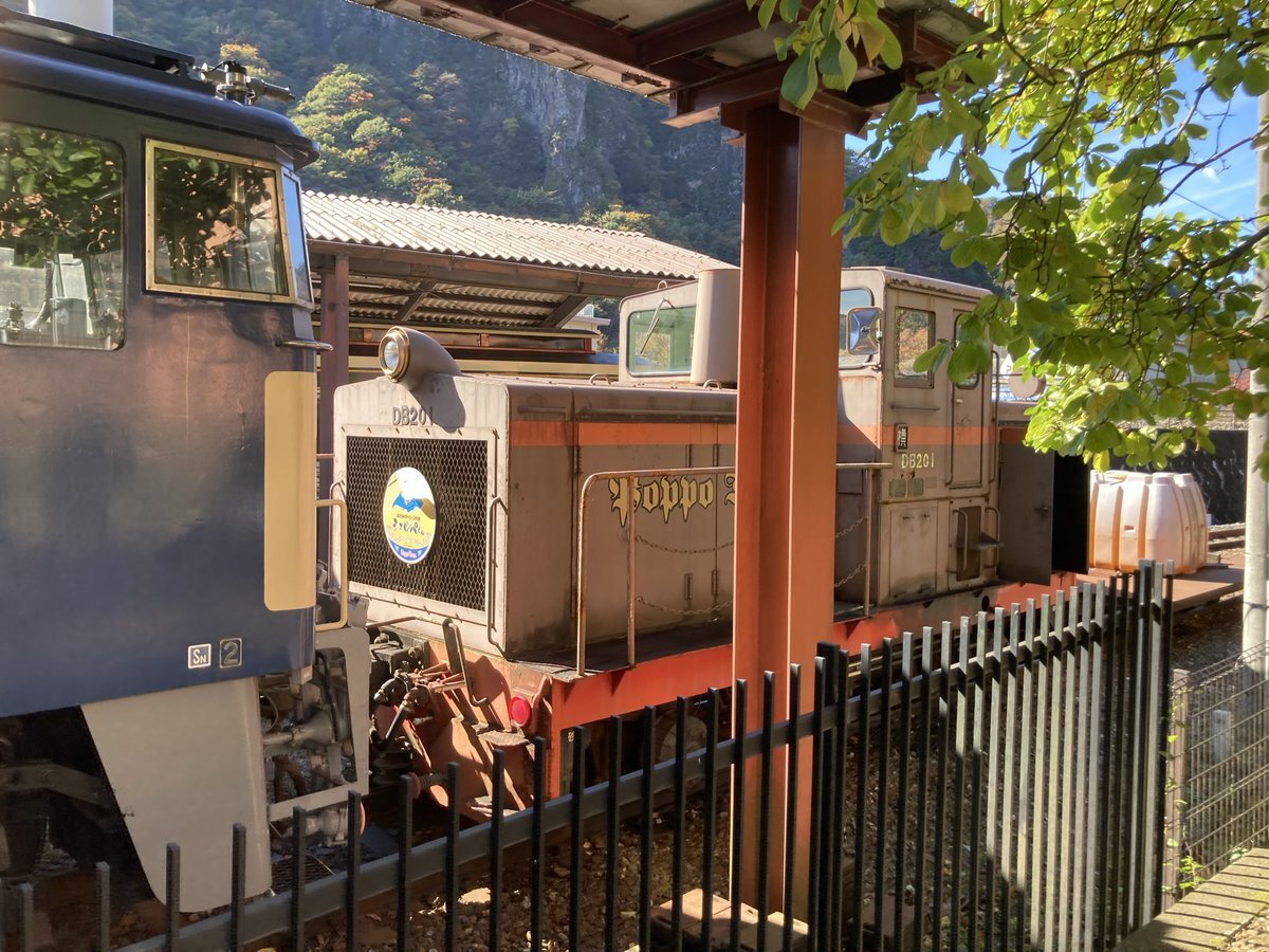 この日は文化むらがお休みということでタイミング悪かったな…と思って外から覗いてみたら先代シェルパくんの機関車がホーム横まで降りてきていてびっくり…! 奥の留置線ではロクサンが3機縦列で置かれていて迫力を感じました…😎 #碓氷峠鉄道文化むら #シェルパくん #EF63 pic.x.com/QIfeHOEPlq x.com/yagasaki_1997/…