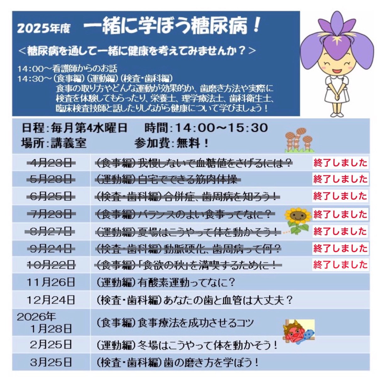 🏃♀️11月糖尿病教室のご案内🍁 日程:11月26日 場所:碧南市民病院 講義室 時間:14:00~15:30 参加費:無料 申込方法:①~③いずれかの方法でお申し込みください。 ①電話での申し込み(「糖尿病教室の申し込み」とお伝えください。) ②下記URLより申し込み hospital.city.hekinan.aichi.jp/feature/volunt… #碧南市民病院 pic.x.com/uhgQcMcXJO