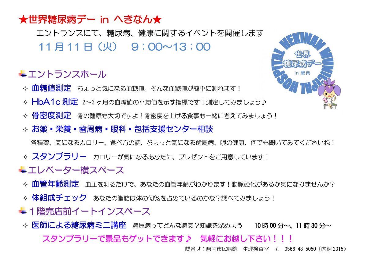 ◤イベント開催まであと1週間!◢ 糖尿病イベント「世界糖尿病デーinへきなん」開催まであと1週間となりました! スタンプラリーで景品もゲットできます! 気軽にお越しください🎶 #碧南市民病院 #世界糖尿病デー pic.x.com/BXCvccn00Q