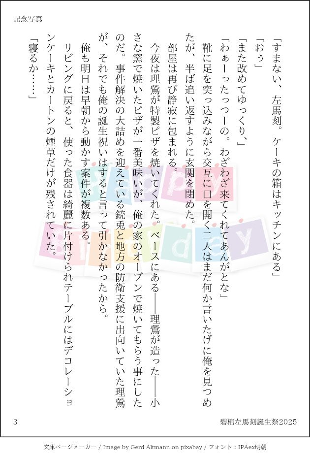ケーキを食べる時間はなくて、早々にお開きになった年もあるかも…… それでも毎年記念写真を撮るMTCのお話📸🎂 (画像投稿ミスのため、あげなおします) 『記念写真』MTC (全8ページ・続きはスレッドに) #碧棺左馬刻誕生祭2025 pic.x.com/BgwXOlYGVB