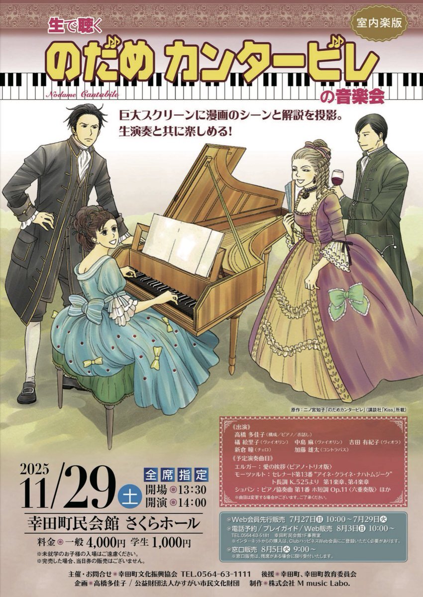 【学生券は1,000円!!】 生で聴く のだめカンタービレの音楽会 室内楽版 ■2025年11月29日(土) 14:00~ ■愛知県・幸田町民会館さくらホール happiness.kota.aichi.jp/hall/event/ent… #高橋多佳子 #礒絵里子 #城戸かれん #吉田有紀子 #新倉瞳 #加藤雄太 #拡散希望 【Lコード】41824 l-tike.com pic.x.com/jEGguybILn