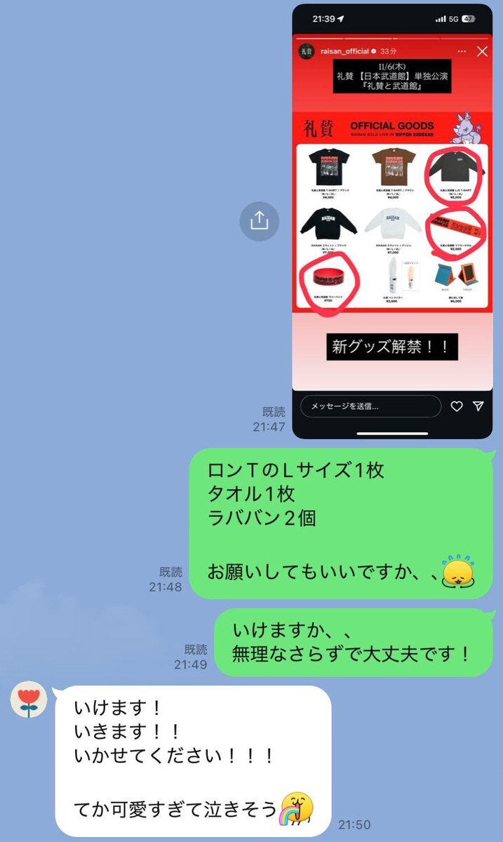 おかしいな、、 前のライブのラババン2個と、武道館の日は午前中仕事で先に物販買っておいていただいたんだけど、、 増えてる。 プレゼントです!🥰ってまじすか しかもチキって買えなかったペンラ買ってくれた😭おかげでよりライブ楽しめました!😭本当にありがとうございました! #礼賛と武道館 pic.x.com/S7MbVMq2Ei