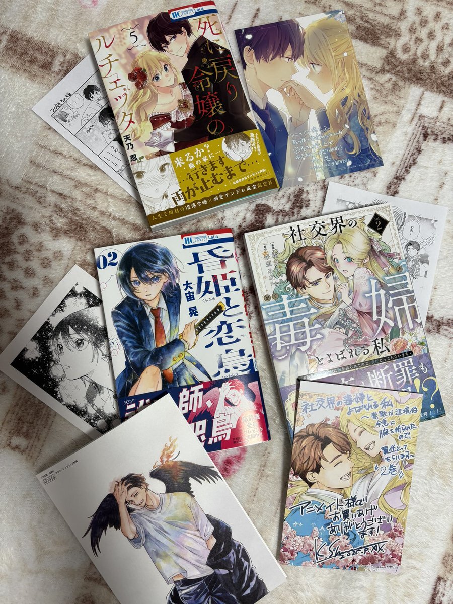 【11月の漫画〜その1】 ようやく迎えに行けたんだ!⸜(> <⑉))⸝キャッ♡ 特典に豪華なイラストばかりで嬉しすぎる!!❀(*´▽`*)❀ #死に戻り令嬢のルチェッタ #昏姫と恋烏 #社交界の毒婦とよばれる私~素敵な辺境伯令息に腕を折られたので、責任とってもらいます~ pic.x.com/36s6Obh9Cy